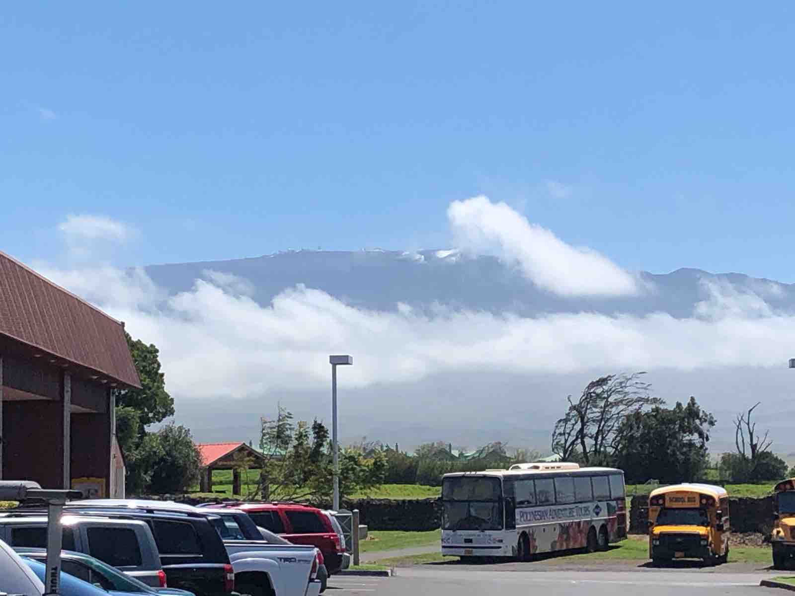 標高4,205メートルのマウナケア山は途中にオニヅカ・ビジターセンターがあって,そこまでは誰でも行くことができます。そこから先がダート道で4WDが必要とのこと,また,ツアー会社でチャーターするとかなり高価なのです。しかし,それよりもっと問題なのは山頂が強風だと道路が閉鎖されて登れないことが多いということなのです。