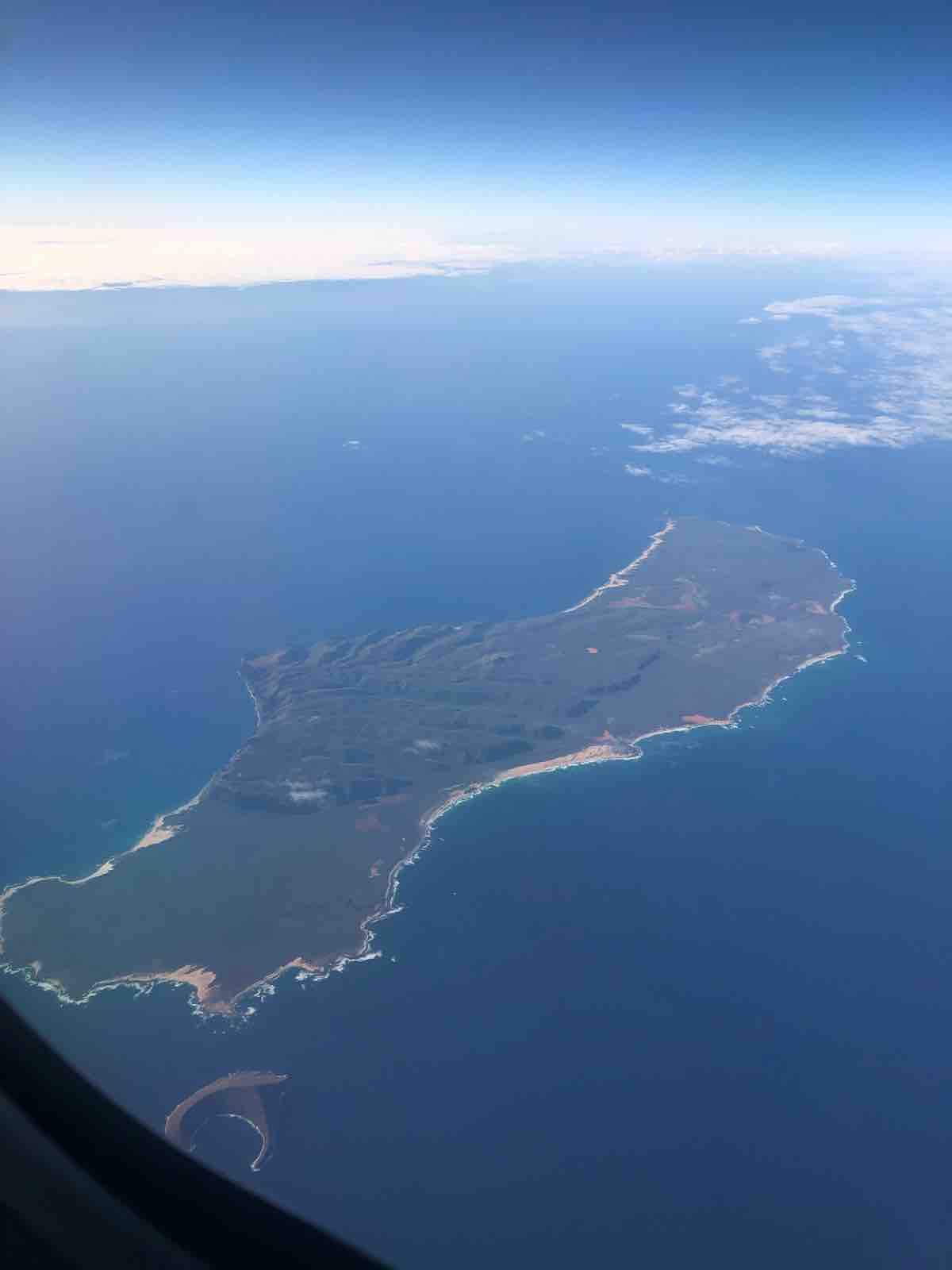 空からはモロカイ島が雲の間から眺められ,それを通過すると,まもなくオアフ島が見えてきました。