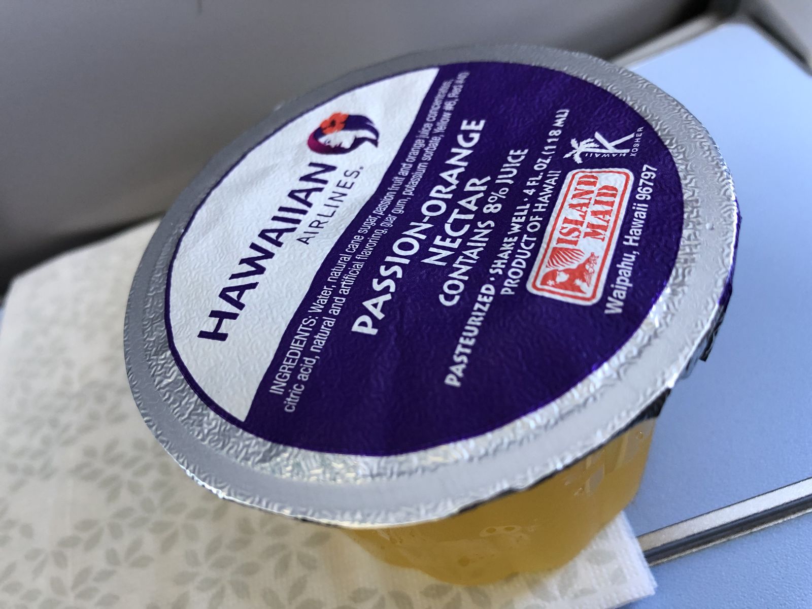 ハワイまではわずか6時間なので,フルフラットとはいえ,寝る時間などほとんどありません。いつものように寝たのか寝ていないのかわからぬまま機内が再び明るくなって起こされました。日本時間ではまだ午前3時なのですが,ハワイ時間ではすでに8時です。朝食が出ました。