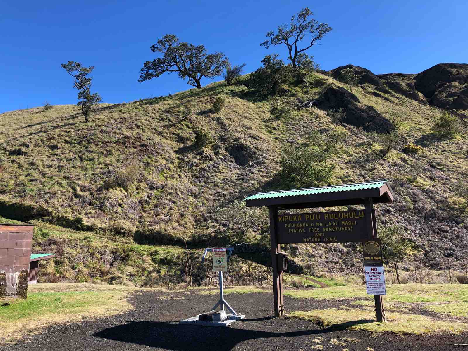 州道200号線を走っていくと,途中で左折するとマウナケア山に登ることができる道路との交差点に差し掛かるのですが,その少し前にマウナケア州立公園というだだっ広いだけの公園があります。マウナケア山のビジターセンターに行くことができないときは,星空観察ツアーはこの公園で星空観察をするわけです。