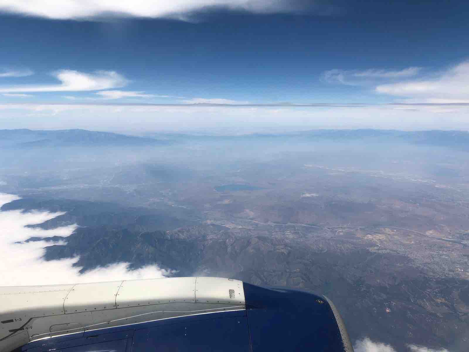 国内線は国際線とは違って,ファーストクラスとはいえエコノミークラスとの違いは座席が広いことと飲み物の入れ物がガラスぐらいのことです。国内線でも3時間くらいのフライトだとファーストクラスだけ食事が出ることもありますが,今回はたった1時間30分なのでなにもありませんでした。しかし,フライトならたった1時間30分でも車で走れば大変です。