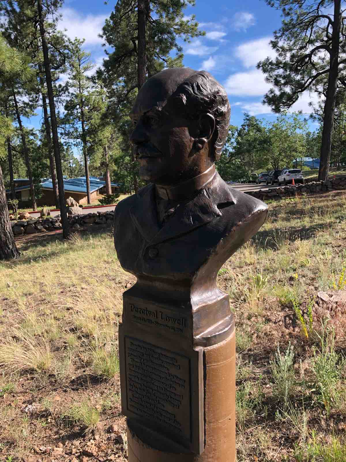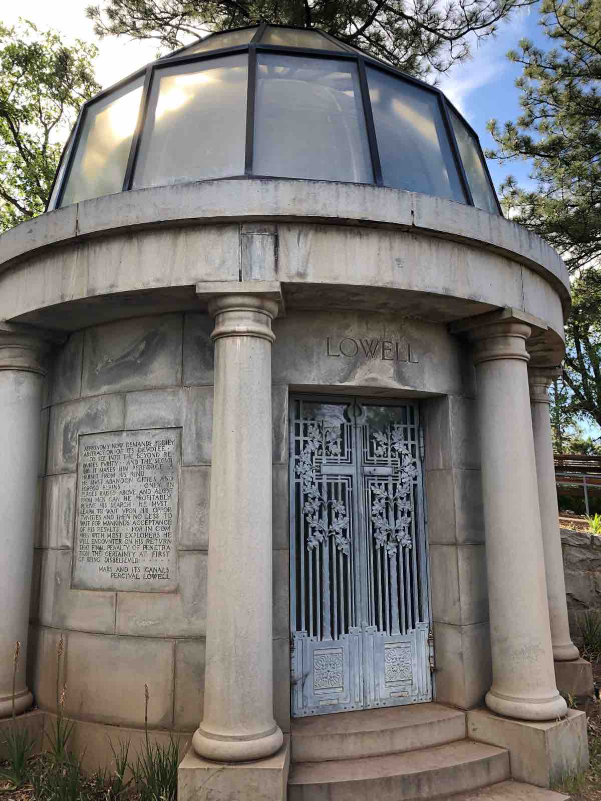 1855年に生まれ1916年に死んだパーシヴァル・ローウェル(Percival Lowell)はボストンの大富豪の息子として生まれ,ハーバード大学で物理や数学を学びました。ちょうど火星観測熱が当時高まっていたころのことで,私財を投じてこのローウェル天文台を建設し,火星の研究に打ち込みました。ローウェルはここローウェル天文台に眠っています。