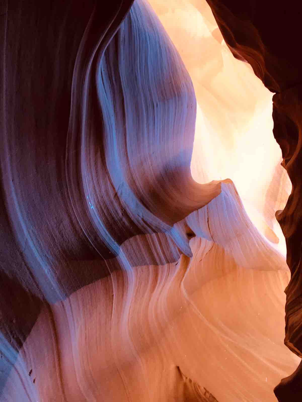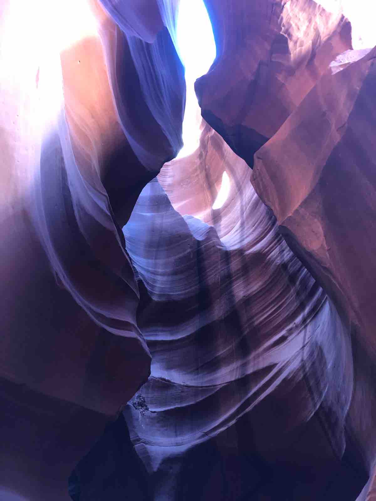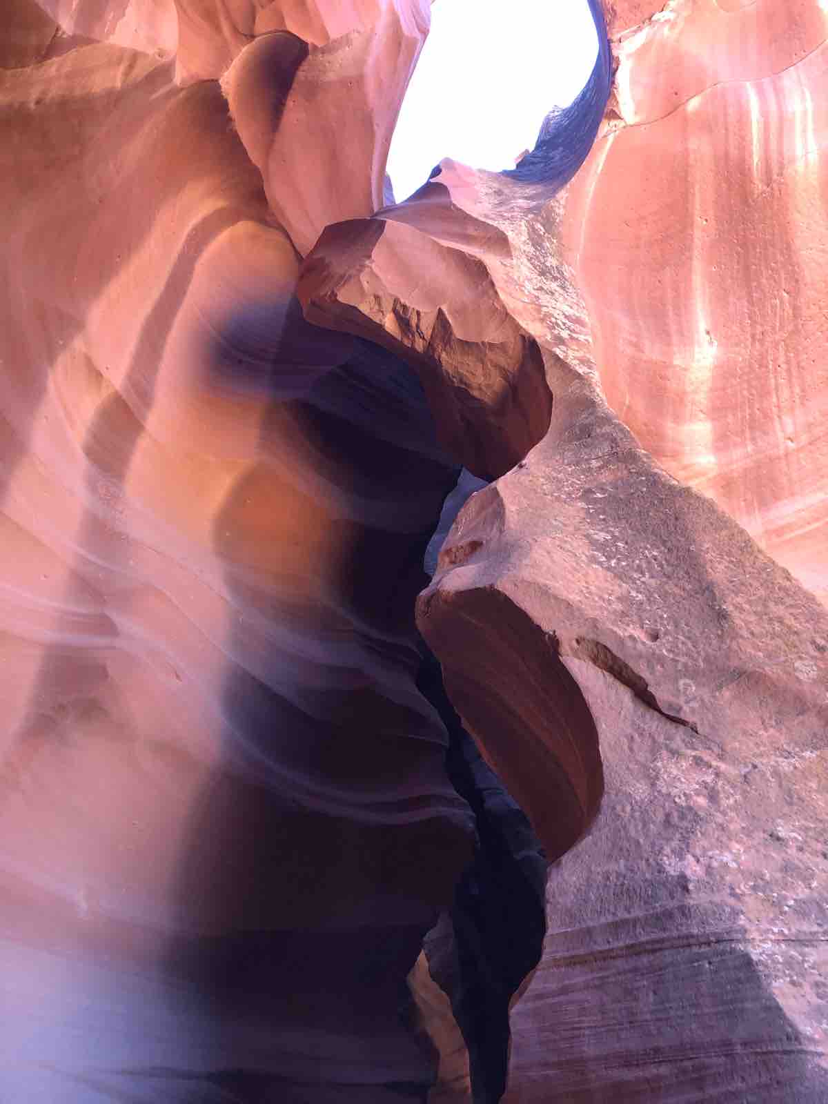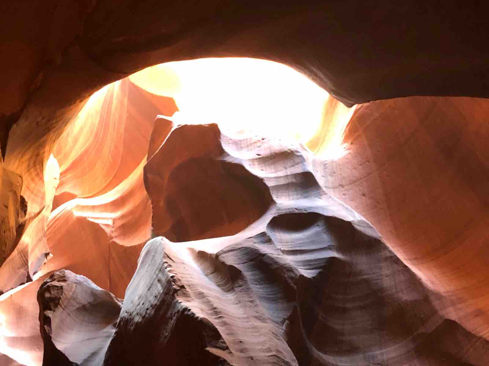 次にアンテロープキャニオンに行きました。この旅の3日目にホースシューベンドとアンテロープキャニオンに行くことができたのはきわめて幸運でした。私は19年前と5年前にユタ州とアリゾナ州にまたがるゴールデンサークルとよばれる地域の主だった国立公園をすでに旅していて,うかつにもそのときにすべて行ったものだと思いこんでいたので,この機会がなければおそらく行くことはなかったのです。