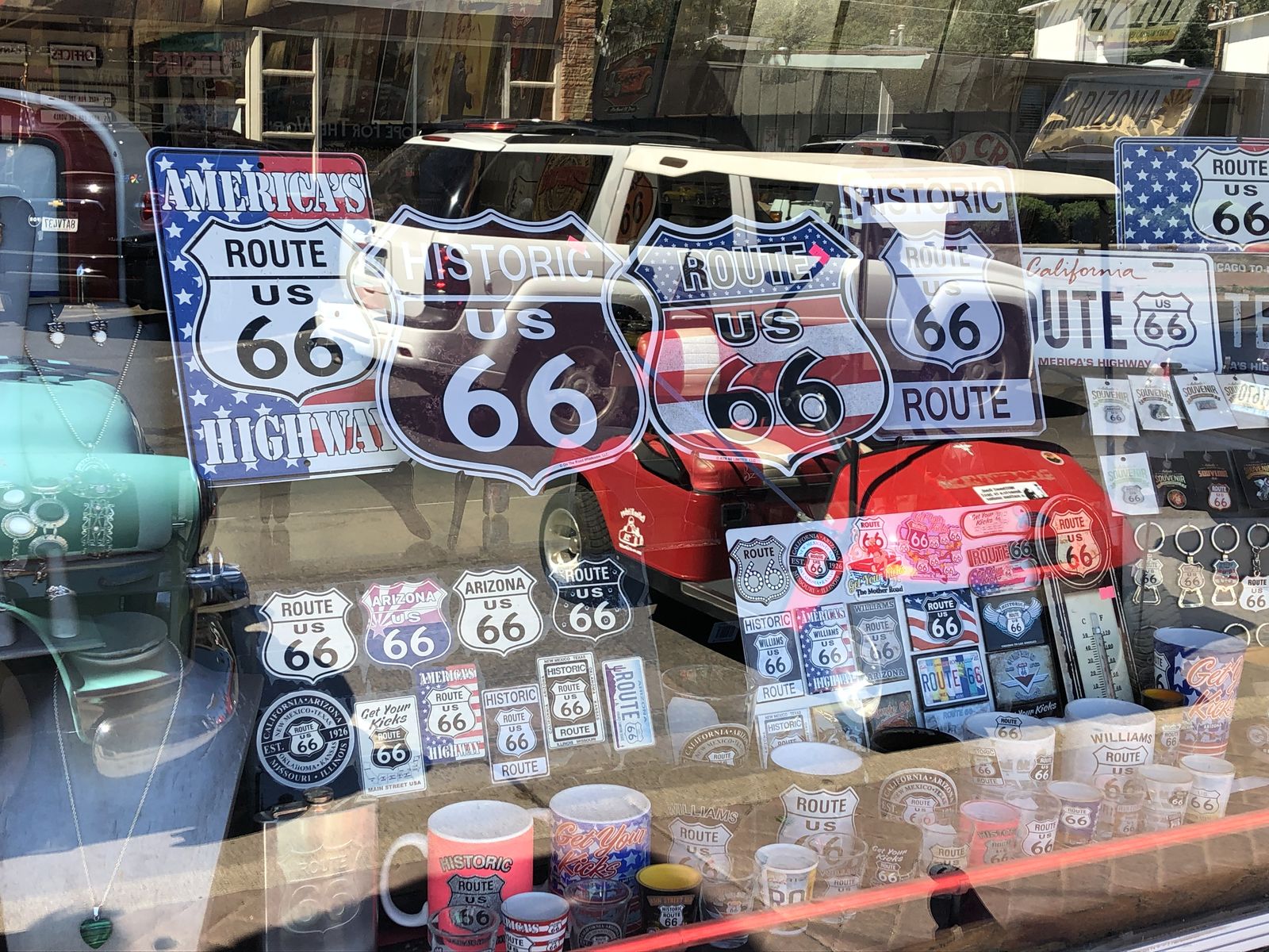 ウィリアムズはけっこう大きな町でしたが,オールドルート66の面影に浸るには十分な町でした。私は,町の中心にあった無料の駐車場の車を停めて,しばらく町を歩きました。ダウンタウンはほどほど古臭く,また,きれいとはいえないところでしたが,それがまた,観光地として整備されていないようで,好感がもてました。結構多くの観光客がルート66の面影を求めて来ていました。
