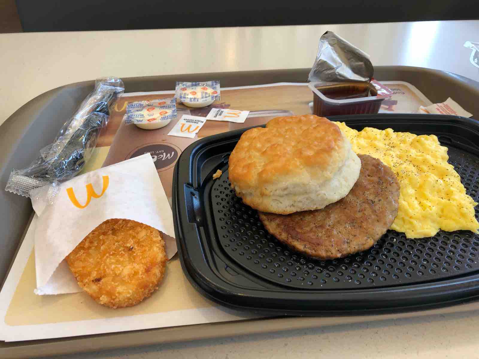 着陸1時間前になってやっと朝食が出てきました。朝食が出てくるのがあまりに遅く,配り終えたらすぐ着陸態勢に入り片付けはじめてしまって,ゆっくり食後のコーヒーを飲む間もない状態でした。これもまあアメリカらしいというか。