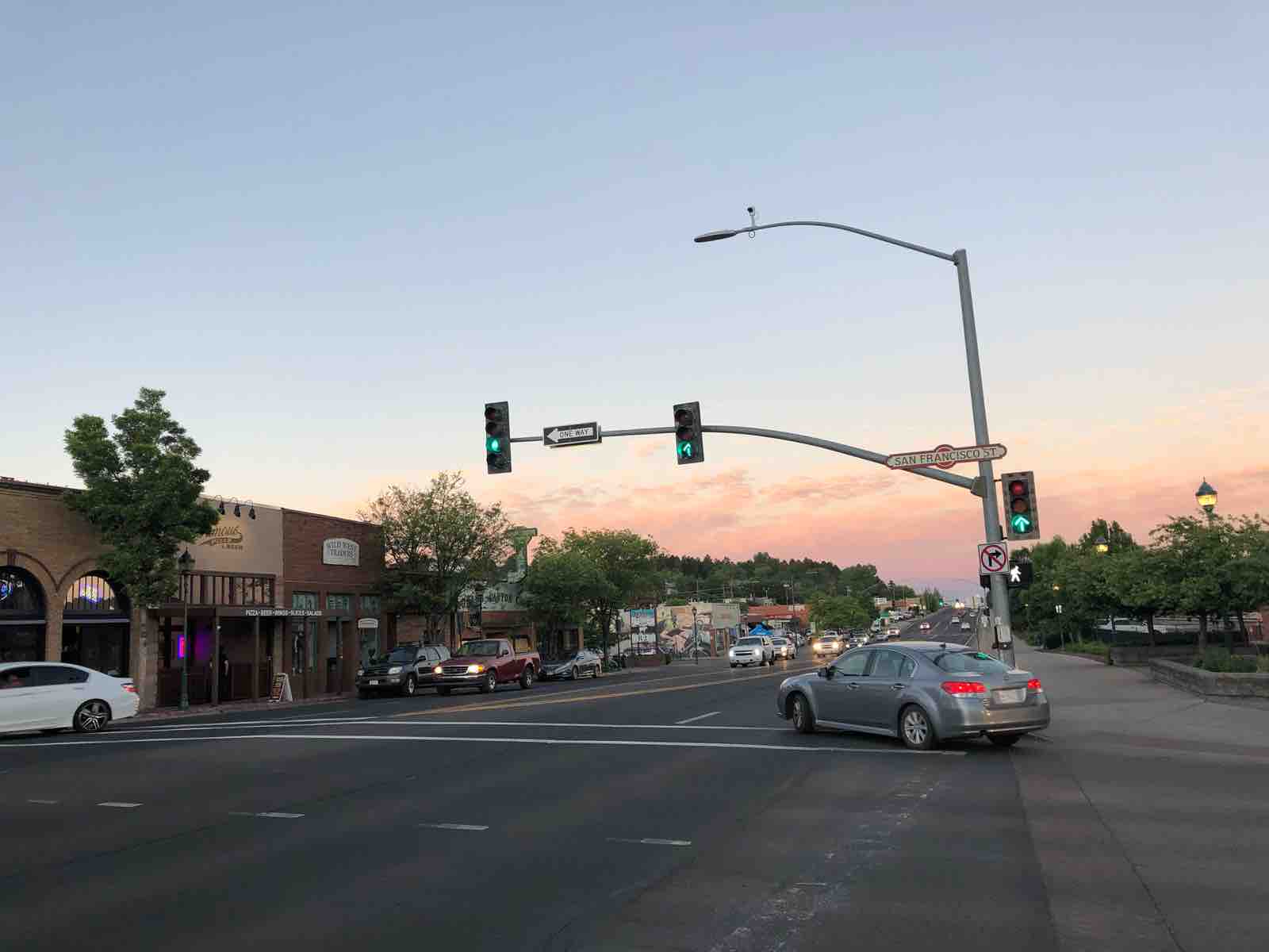 さあ,いよいよ出発です。渋滞するフェニックスの市街地をやっと抜けてインターステイツ17を北上すること2時間30分,夕方にフラッグスタッフに到着しました。フラッグスタッフはアメリカのマザーロードであるルート66 で栄えた古きよき街です。