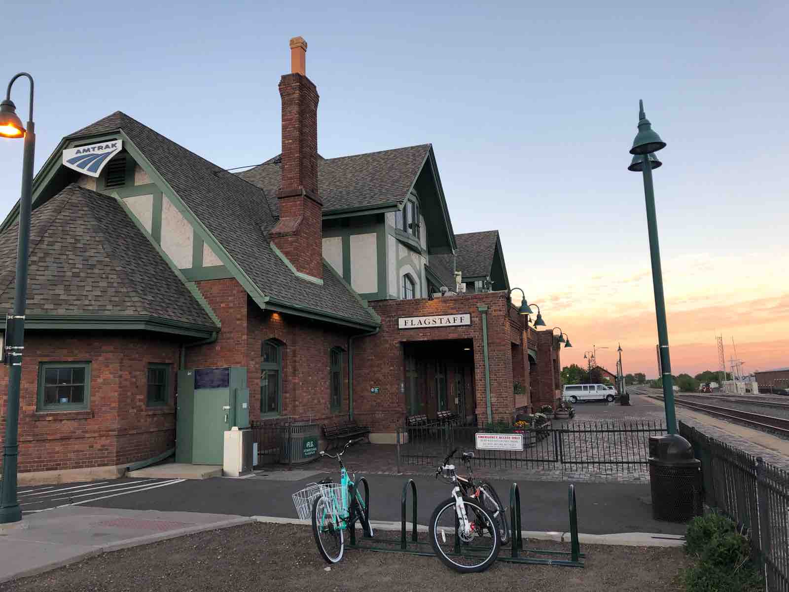 私の宿泊しているフラグスタッフはダウンタウンにこのオールドルート66が通り,今も当時の面影を残す街として多くの人が訪れます。また,オールドルート66に平行してサンタフェ鉄道が走っていて,アメリカの高速鉄道「アムトラック」の停車する駅があります。