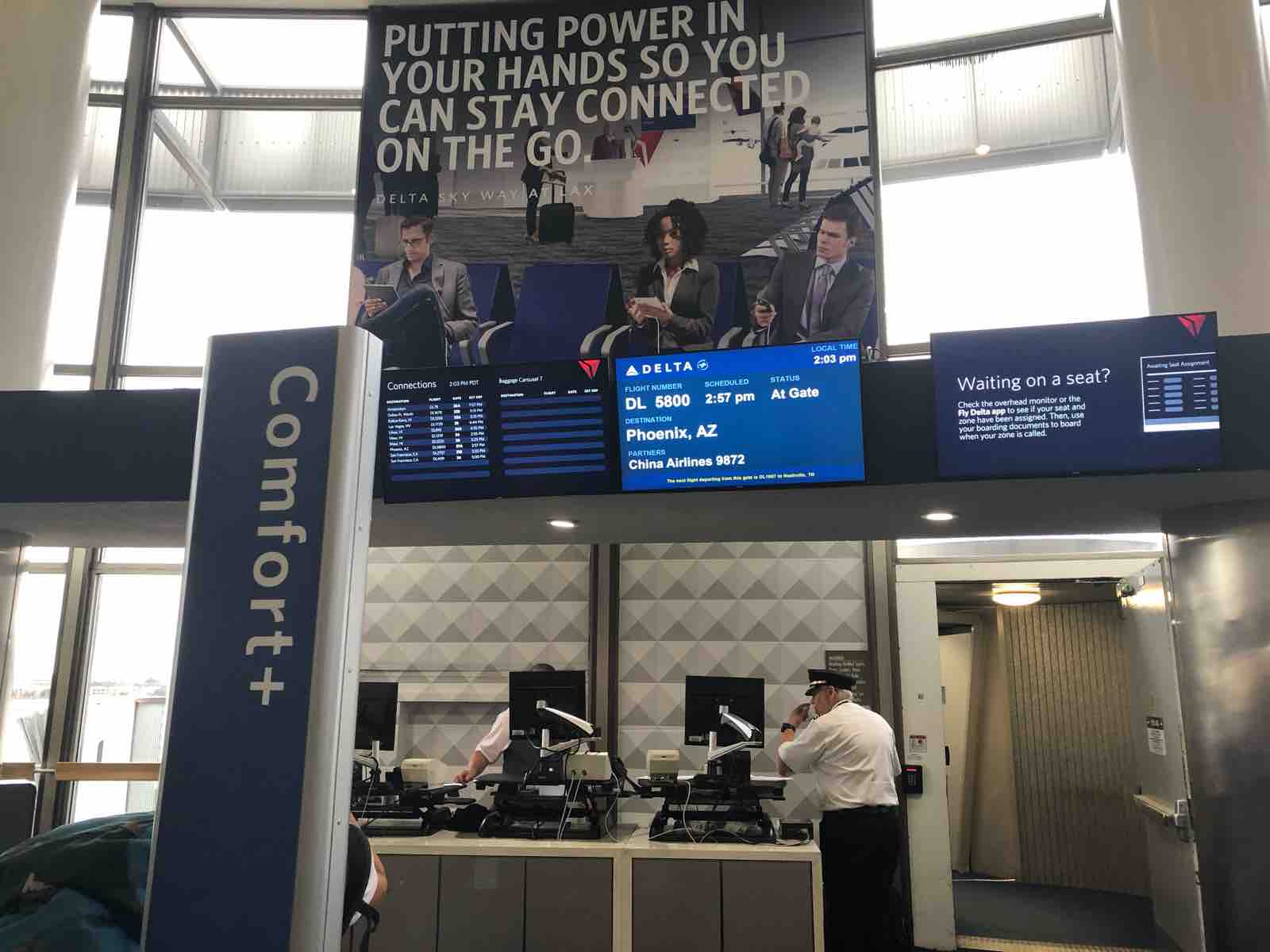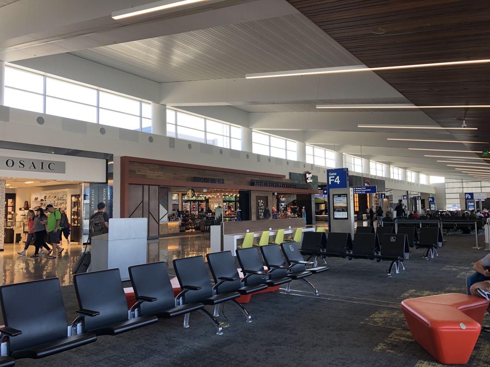 フェニックスの空港は他の大都市の空港に比べて空いていました。この空港はどこの航空会社のハブ空港でもないようで,デルタ航空のラウンジもなければ,プライオリティパスで入れるラウンジもなかったので,ゲートで搭乗時間を待ちましたが,空港は新しく,しかも人が少なかったので,問題はありませんでした。