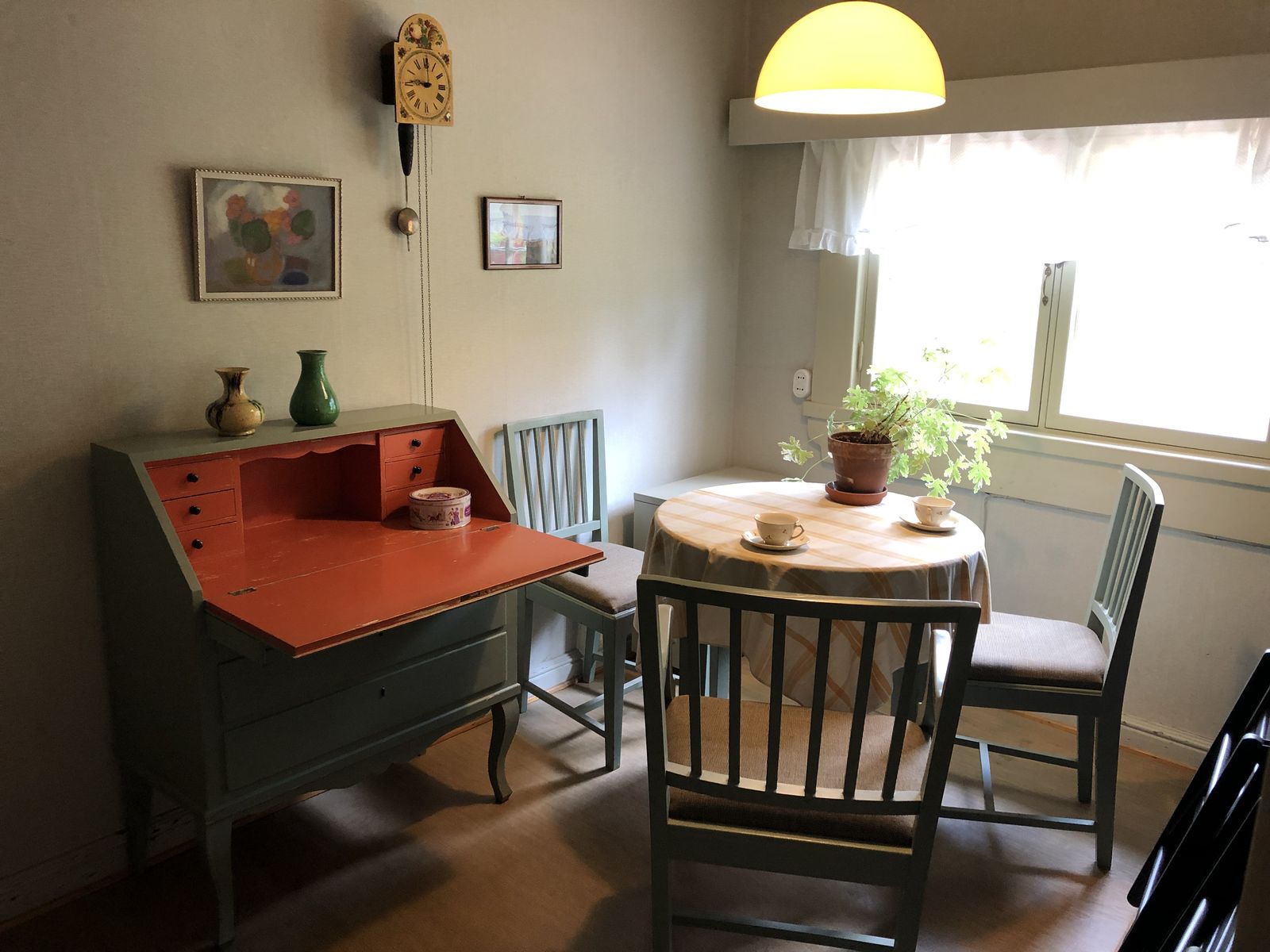 自邸には係の女性がふたりいました。挨拶をして中を見学しました。内部は往時のままに保存してあって,リビングやキッチン,書斎,寝室など各部屋に置かれていた家具や日用品,ピアノや絵画が残されていました。まるでその部屋にはシベリウスが座っているような気がしました。この部屋で作曲をしていたんだなあと思うと胸が熱くなってきました。私の頭の中にはシベリウスの作曲した曲が鳴っていました。満ち足りた気持ちになりました。