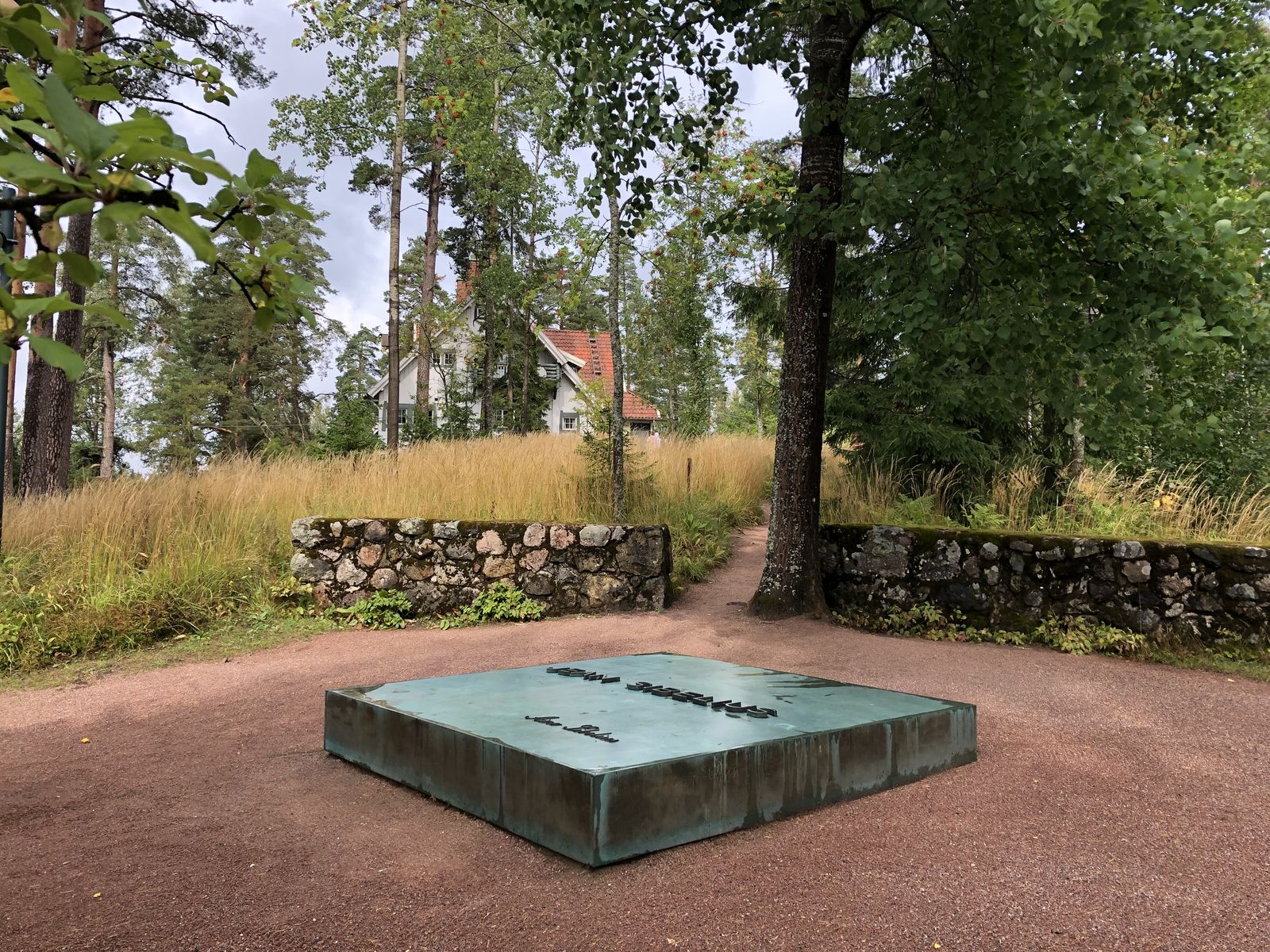 広い敷地に出ました。そこには美しい花の咲く庭園があって,私が訪れたとき,ちょうど1組の日本人の家族連れが来ていましたが,それ以外には誰もおらず,静かで落ち着く場所でした。そのまま歩いて行くと,シベリウスと妻アイノが眠っている墓がありました。そこを上がっていくと,自邸に着きました。