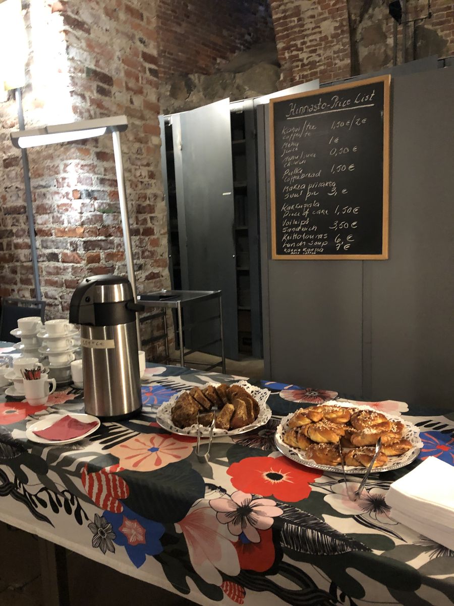 コーヒーとボランティアさんたちの手作りパンで合計3ユーロと安く,とても雰囲気のよいところでした。要するに,これは,カフェというより教会のバザーでした。こうして私は念願のヘルシンキ大聖堂の地下のカフェにも行くことができたのでした。
