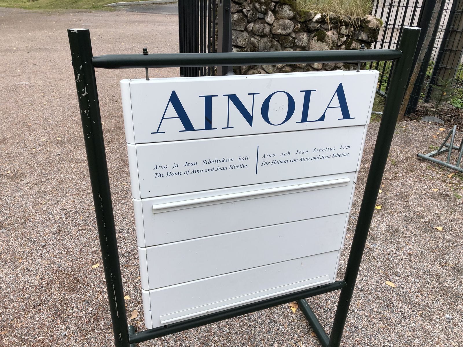 こちらの電車は改札がなく,ホームに行って乗り込むだけです。チケットも検札が来ることがあるらしいのですが,この近距離電車には来ませんでした。約30分でアイノラ駅に到着しました。無人駅でした。駅に大きなシベリウスの看板があって,その看板に書かれた方向に至るあぜ道のようなせまい道路を歩いて行きました。やがて森の向こうにシベリウスの自邸が見えてきました。