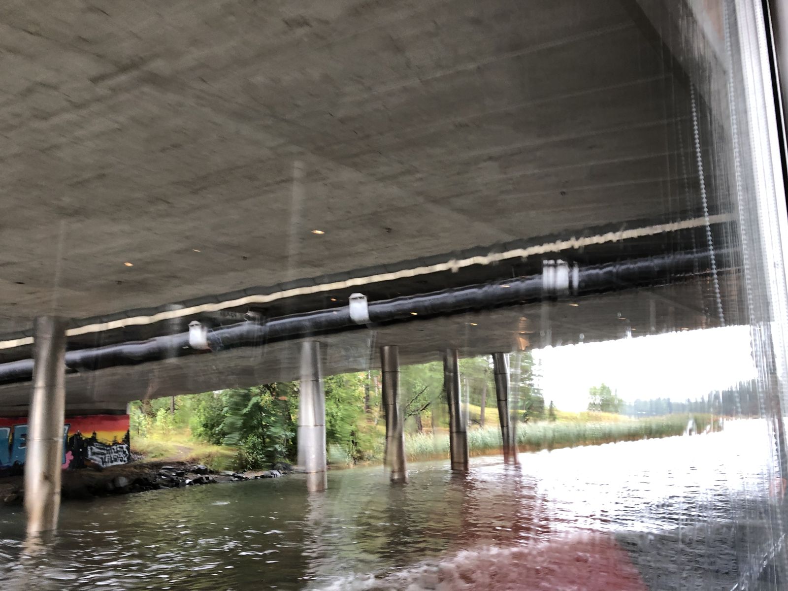 ずっと雨だったので,船室から出ることができませんでしが,船室の窓からも,ヘルシンキ湾が十分に堪能できました。このクルーズ最大の見せ場が船の幅ぎりぎりの運河を通るときで,船が脇をこすりながらすり抜けていきました。