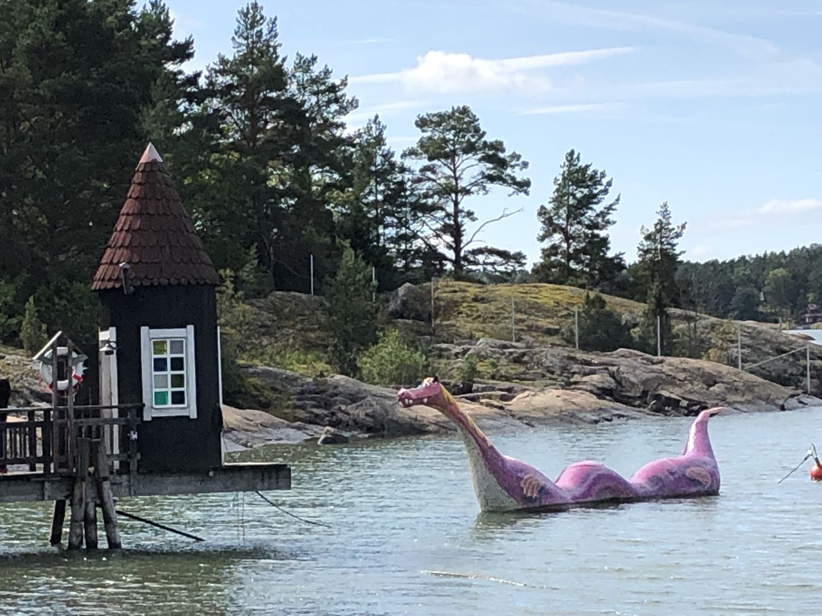 ついにナーンタリまでやってくることができました。ここは湘南海岸をもっと人を少なくしたようなところで,ムーミンワールドは江の島のような感じでしょうか。ともかく,ナーンタリの海岸沿いには多くのしゃれたカフェやレストランが並んでいて,とてもすばらしいところでした。ムーミンワールドはナーンタリの海に浮かぶ島をまるごと利用したテーマパークなので,結構長い橋を渡ると入口がありました。