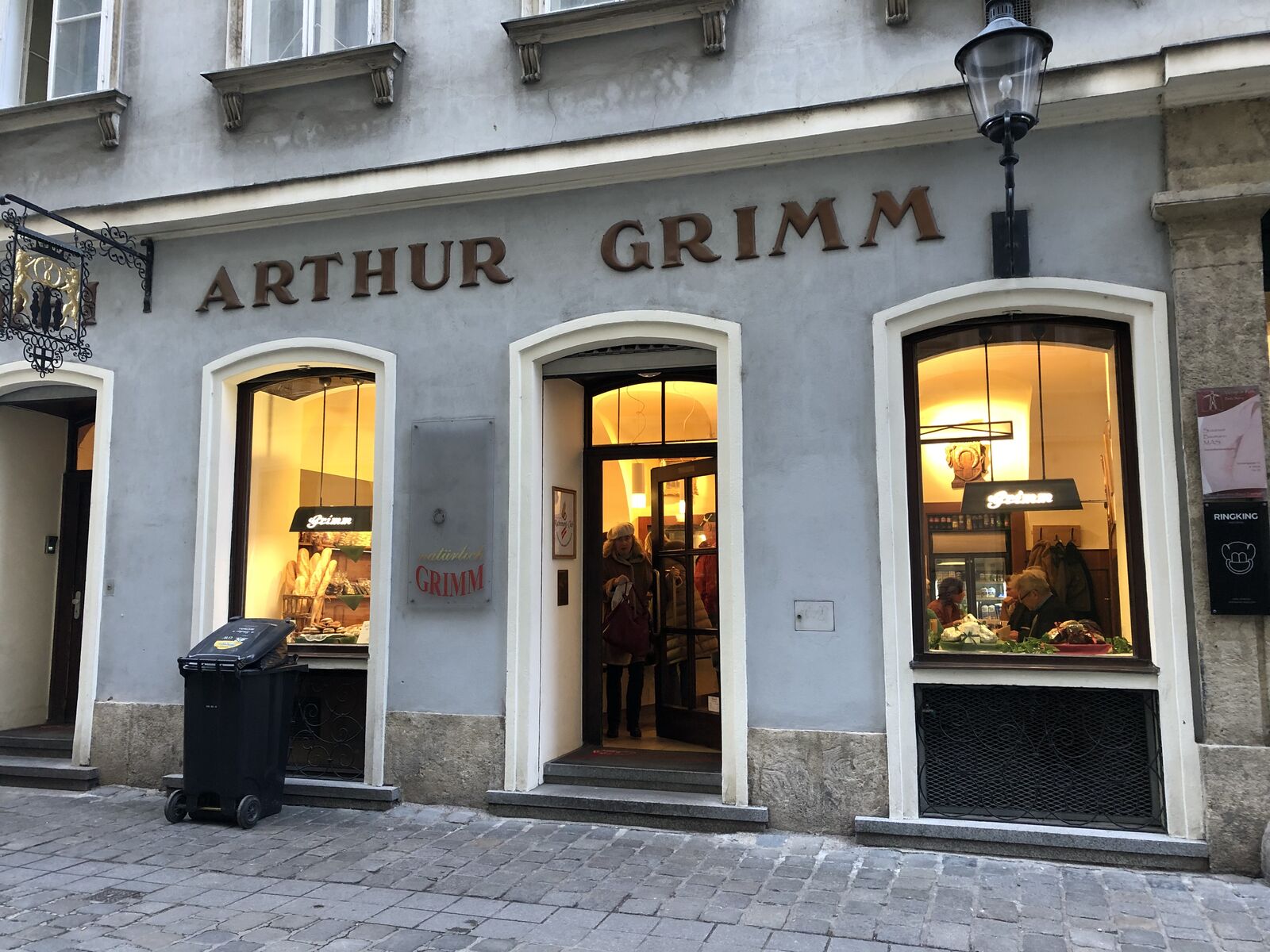 私ははじめケルントナー通りを北に向かって歩きながら,途中でどこか見つけて夕食をとって,ホテルに戻ることにしていましたが,ケルントナー通り沿いの店は先に書いたようにどこも混雑していて,とても入る気になりませんでした。しかし,シュテファン大聖堂まで行きついて西に折れ,リング通りを渡って市庁舎を過ぎてしまうと,ホテルの付近にはお店もなくなるので,そのまえにどこかないかなと折り返し,今度はデゲフト通りの狭い歩道を歩いていると,1件のカフェが開いていたのを見つけたので,なかに入ってみました。