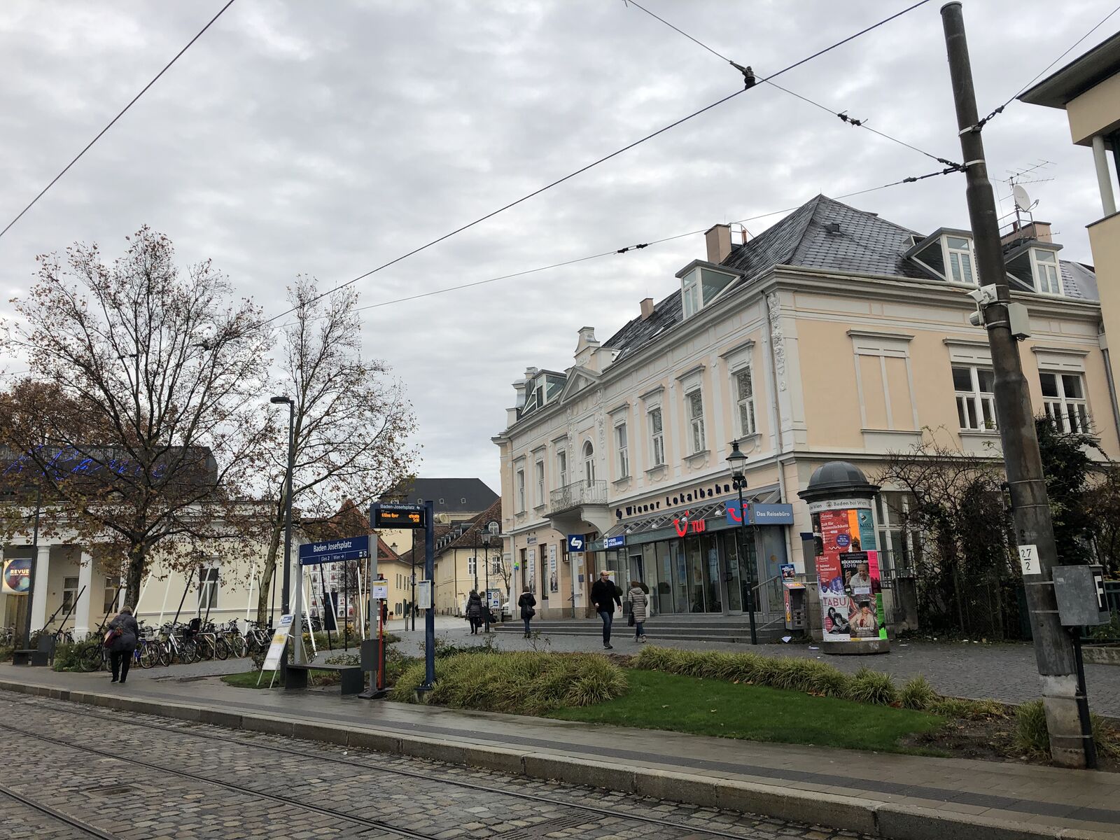 このように,なんやかやとあったのですが,こうした思いがけない出来事こそが旅の醍醐味。無事,終着のバーデンに到着して,駅前で降りることができました。