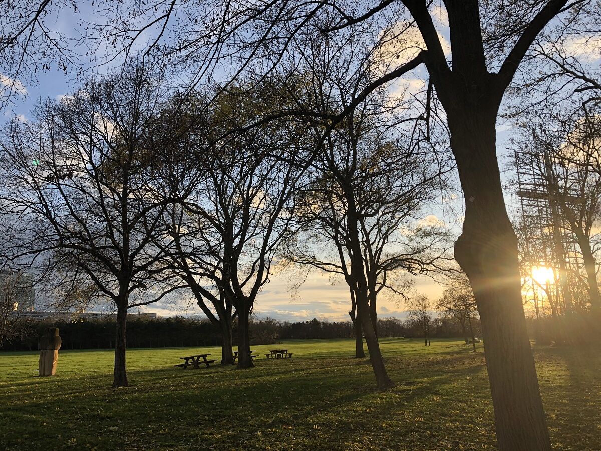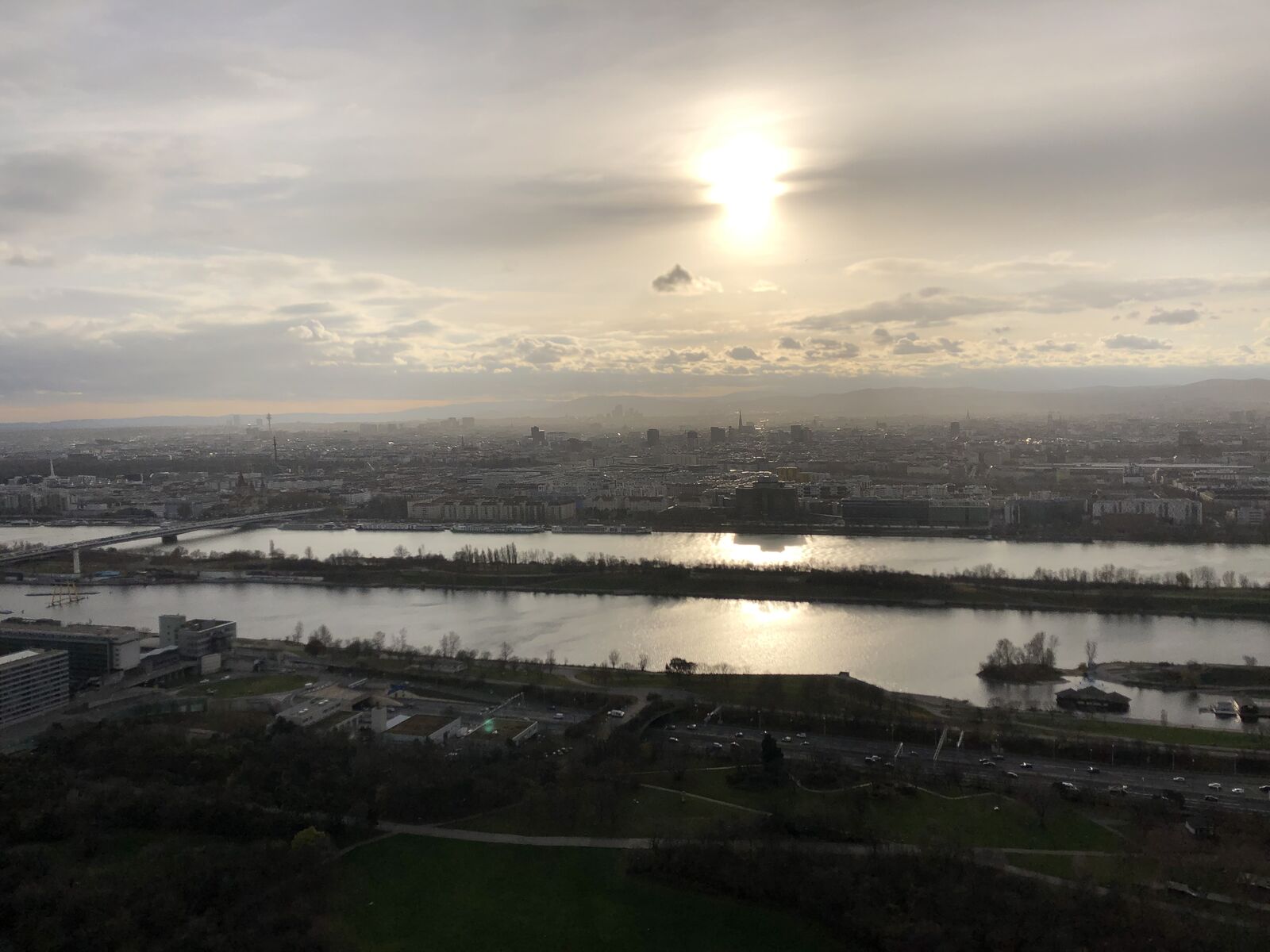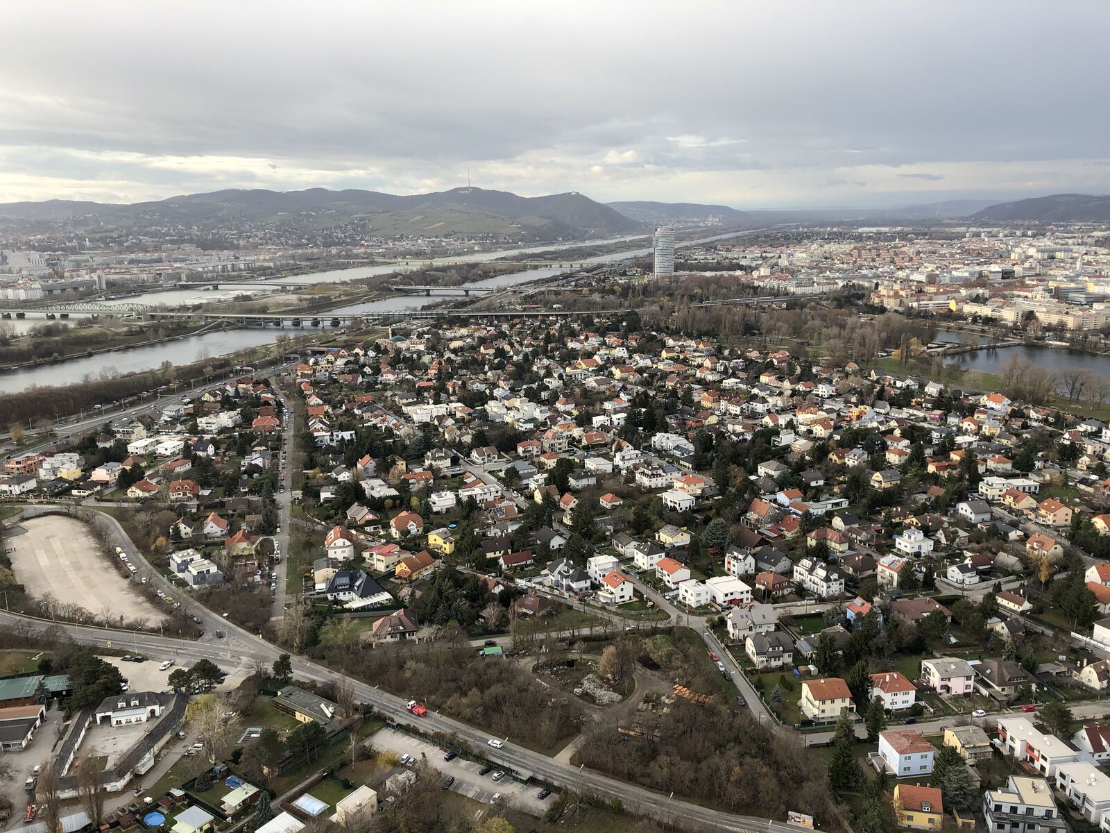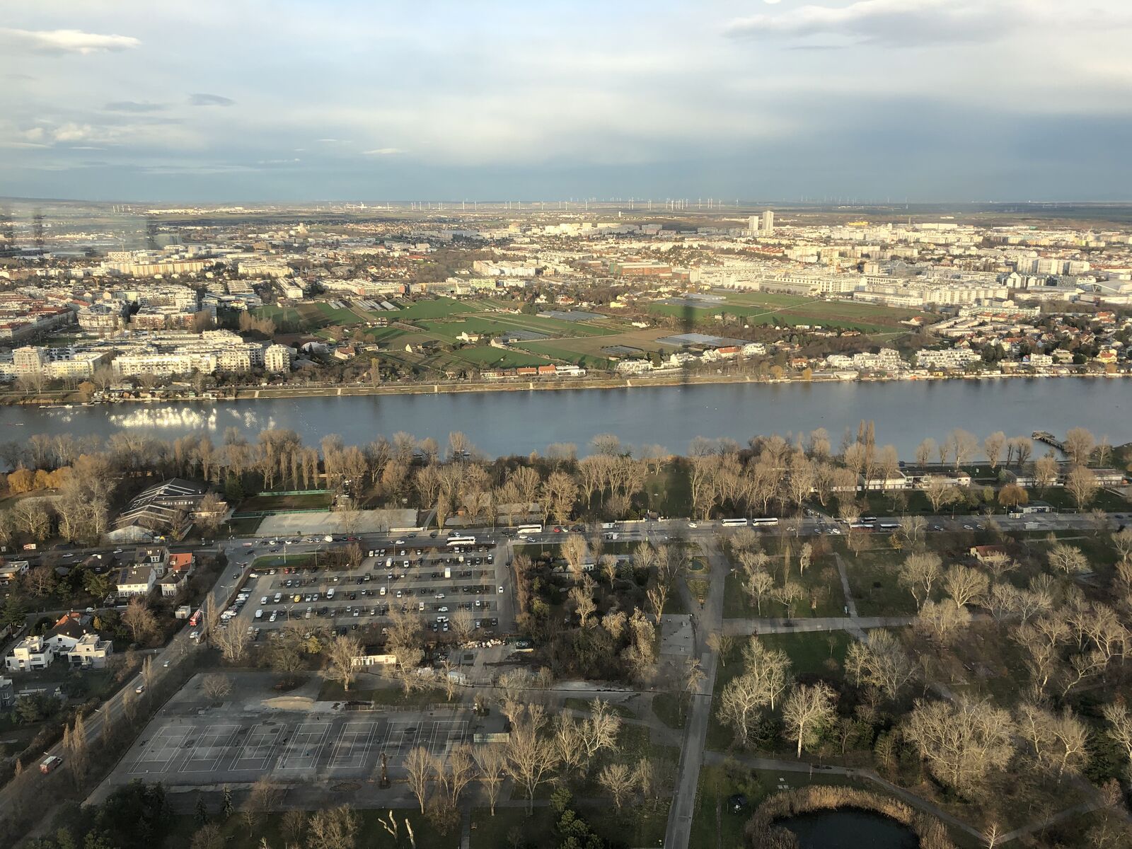 国連の建物の北側にドナウ公園が広がっていて,そのはるか向こうにタワーがありました。ドナウタワーまでは歩いて15分ほどということだったので,公園を通って行ってみました。展望台に行って引き返せば1時間くらいだろう,それなら国連の次の見学ツアーの時間に間に合うだろうと思いました。