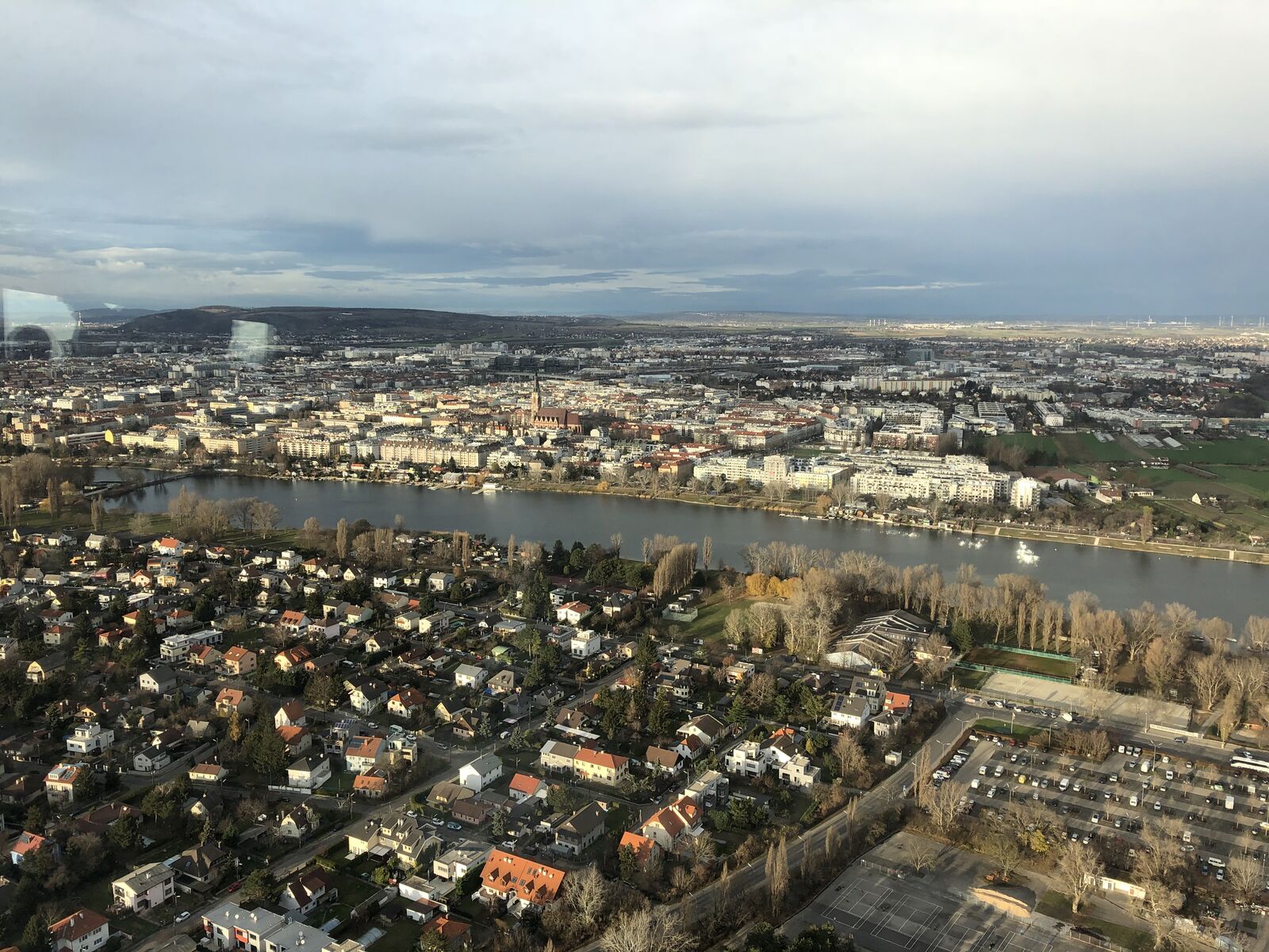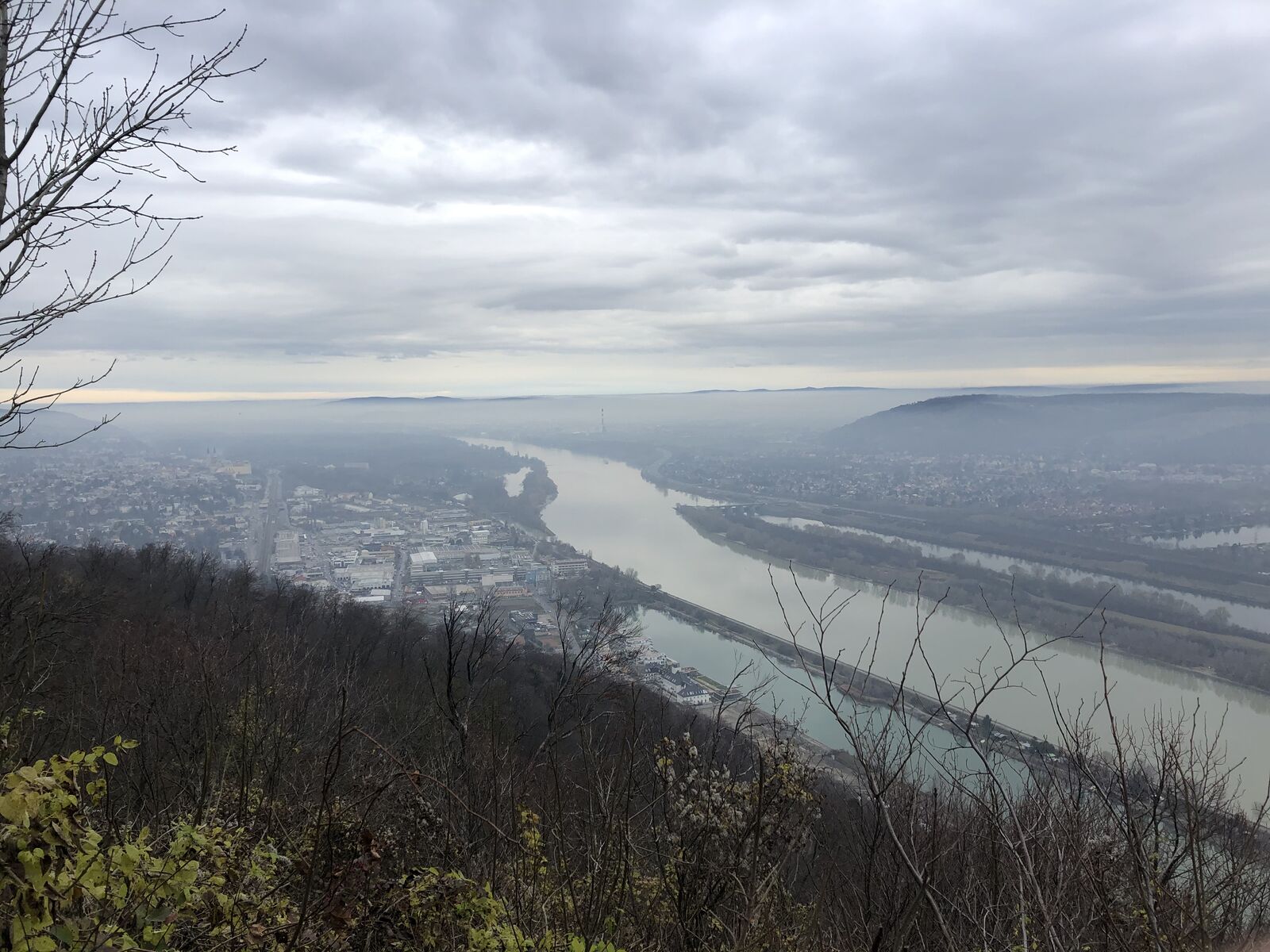 レオポルツベルグの丘には古城があって,中には入れないのですが,古城のほとりにあった広場からはウィーンが一望できました。それはカーレンベルグの丘からよりずっとすばらしい景色でした。あいにく天気が悪かったのですが,それでもドナウ川を見ることができました。