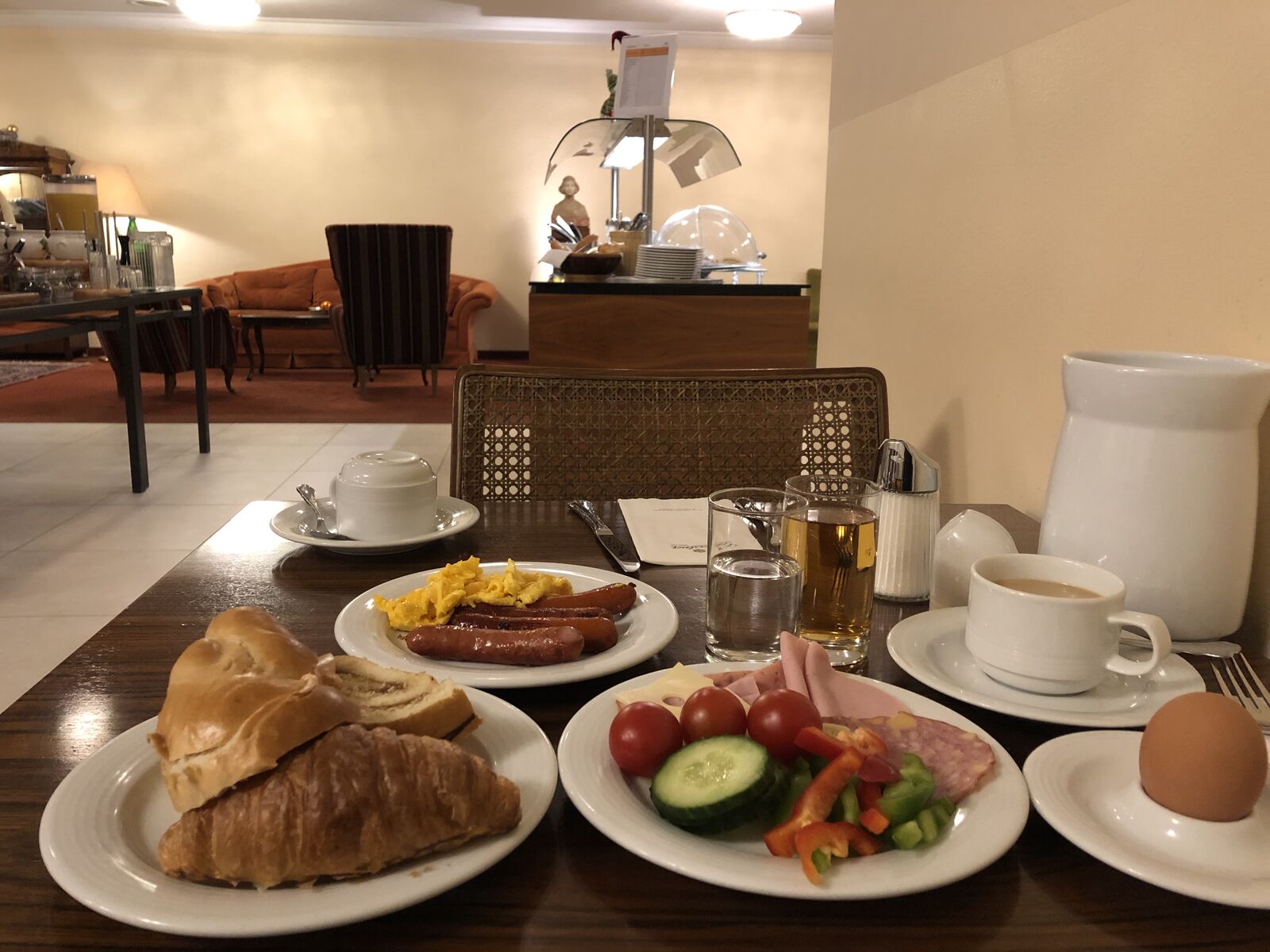 宿泊していたホテルでは朝食が午前6時30分からでした。この夏に宿泊したヘルシンキでもそうでしたが,ホテルの朝食が予想以上だったのがうれしい誤算でした。食事がまるで餌でしかないアメリカとはえらい違いです。そしてまた,日本の私の宿泊する東横インのように,朝食がすし詰め状態で,しかも,ご飯に味噌汁,コーヒーは紙コップ,というようなお粗末なものではなく,非常に充実し,しかも空いていたのが最高でした。