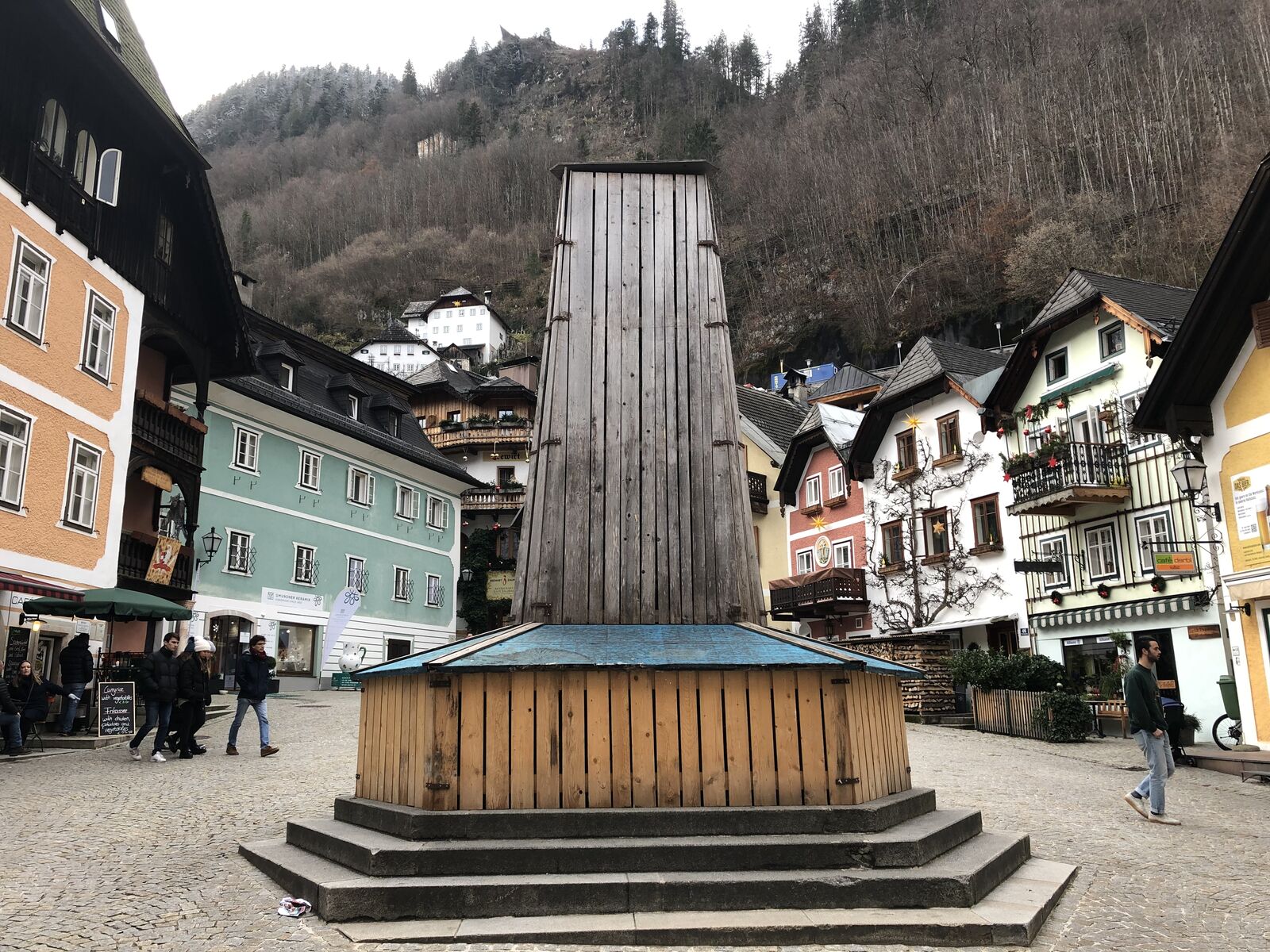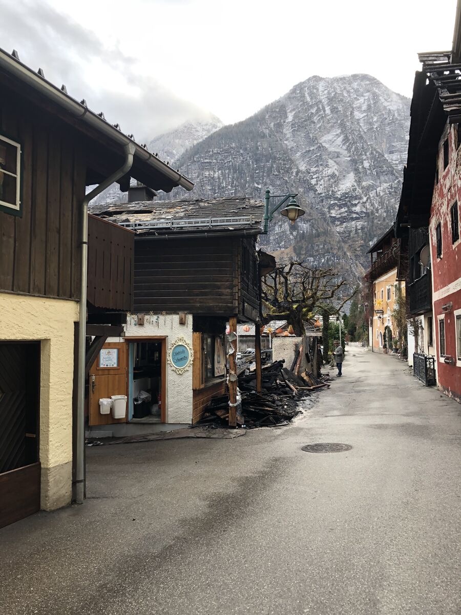 船着場から湖沿いにゼー通りを歩いて行くと,マルクト広場に着きました。この先さらに歩いて行こうとすると,なんと通行止めになっていました。実は,この日,ハルシュタットには火災が発生していたのです。以下は新聞記事です。