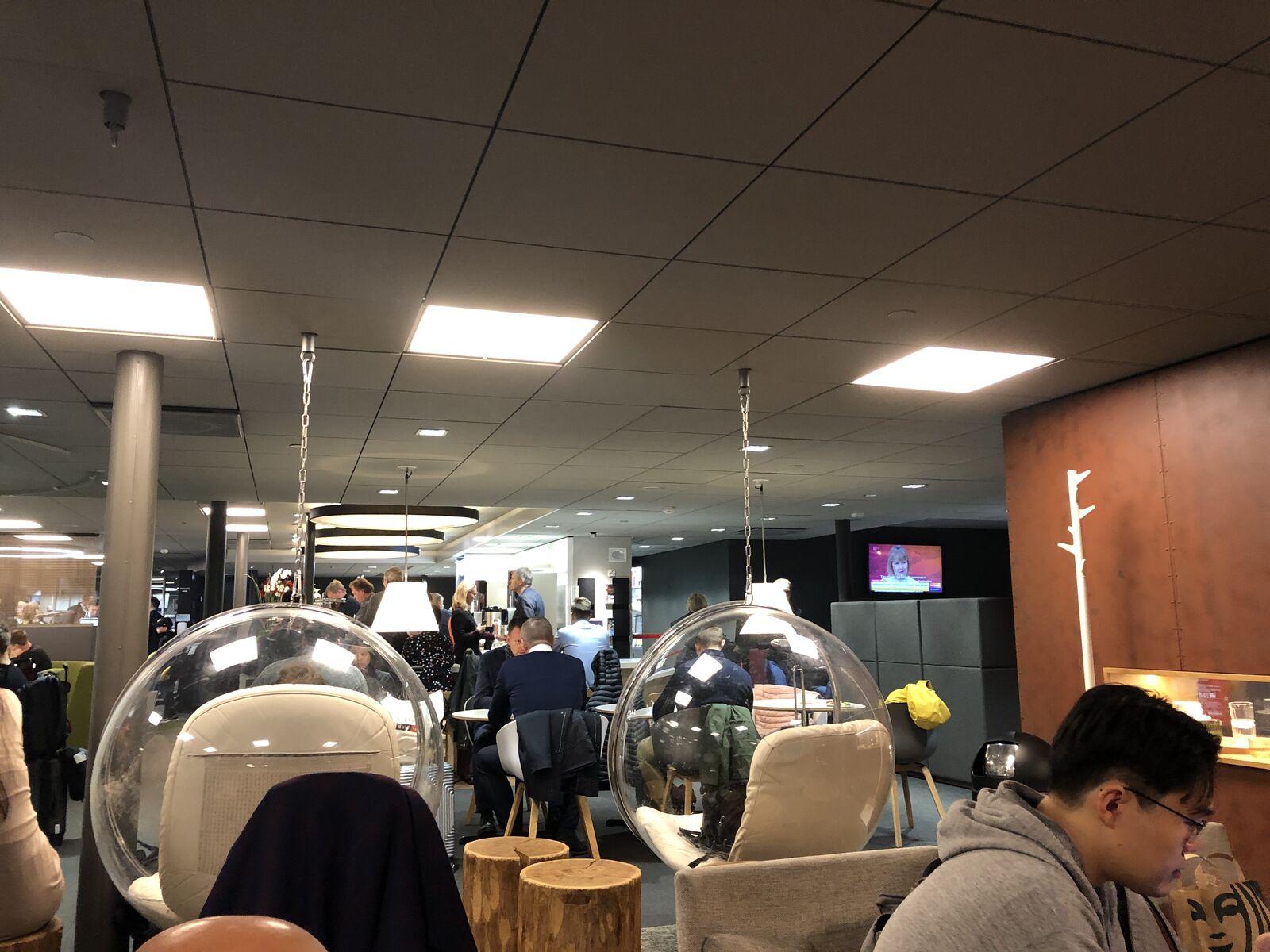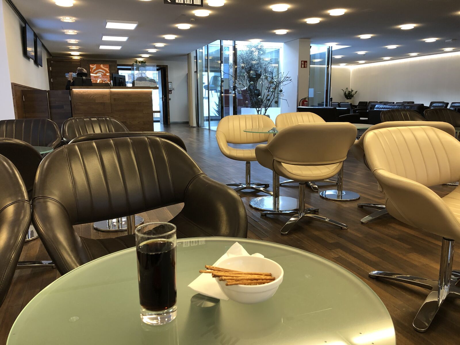 帰りはヘルシンキでのセキュリティもなく,ただ,帰国に際してコンコースの途中のゲートでEUシュンゲン圏から出るために顔認識をしてパスポートにスタンプを押してもらうだけです。ヘルシンキのヴァンター国際空港では,EUシュンゲン圏内乗り換えターミナルだけでなく,国際線ターミナルにもラウンジがあるのですが,そちらのラウンジは意外と知らないので,すごく広いラウンジはほとんど空いていて,とても快適でした。
