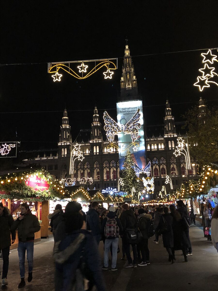 部屋に荷物を置いて,外に出ました。昨年ウィーンに来たときに,主だった場所には行ったのですが,うかつにも市庁舎前のクリスマスマーケットとスケートリンクに行けなかったので,まず,そこからです。ホテルからは歩いてわずか5分程度の場所です。