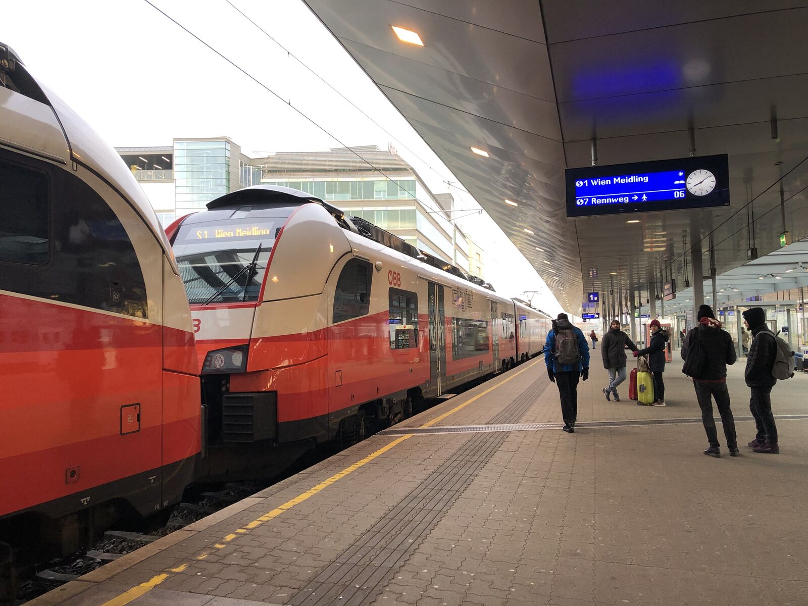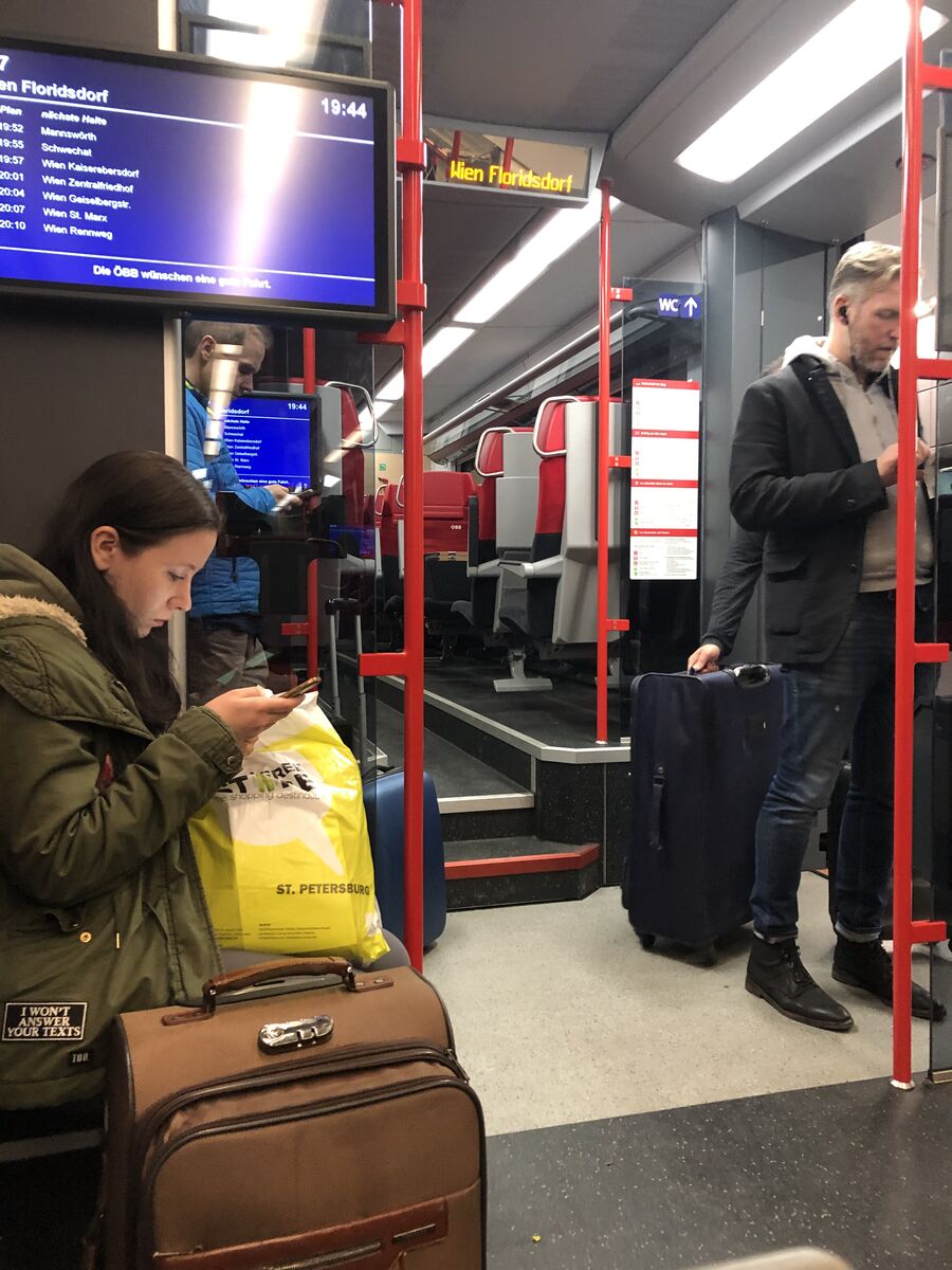 ヘルシンキからウィーンまでの機内はほぼ満席でした。国際線と違って,荷物を機内に持ち込む乗客が多くて,乗るのが遅くなった私は,荷物を入れる場所に苦労しましたが,なんとかなりました。2時間30分程度のフライトで時差が1時間,定刻,ウィーンに到着しました。昨年はじめてきたときはウィーンの国際空港からウィーン市内まで行く電車に乗るのに少し戸惑いましたが,今年も同じでした。ウィーン国際航空からはCATという高速鉄道とS7という近距離電車があって,時間はほとんど同じですが,CATのほうが運賃が倍ほどかかります。ホームは並んでいて,はじめて行った人にはとてもわかりにくいです。ホームに降りる途中に,案内所があって,昨年はそこにあった自動販売機で並んでチケットを購入したのに,そのあとホームに降りて行ったら,そこに多くの自動販売機があったのでがっかりした経験があって,今年は案内所をそのまま通り過ぎて,たくさん並んでいた自動販売機でチケットを購入しました。