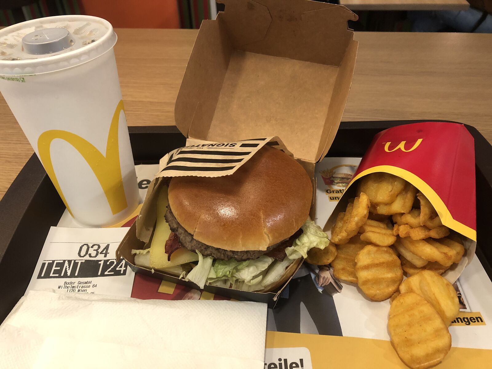 マクドナルドはものすごく混み合っていました。席もほとんど埋まっていのですが,なんとか座る場所を確保して夕食をとりました。