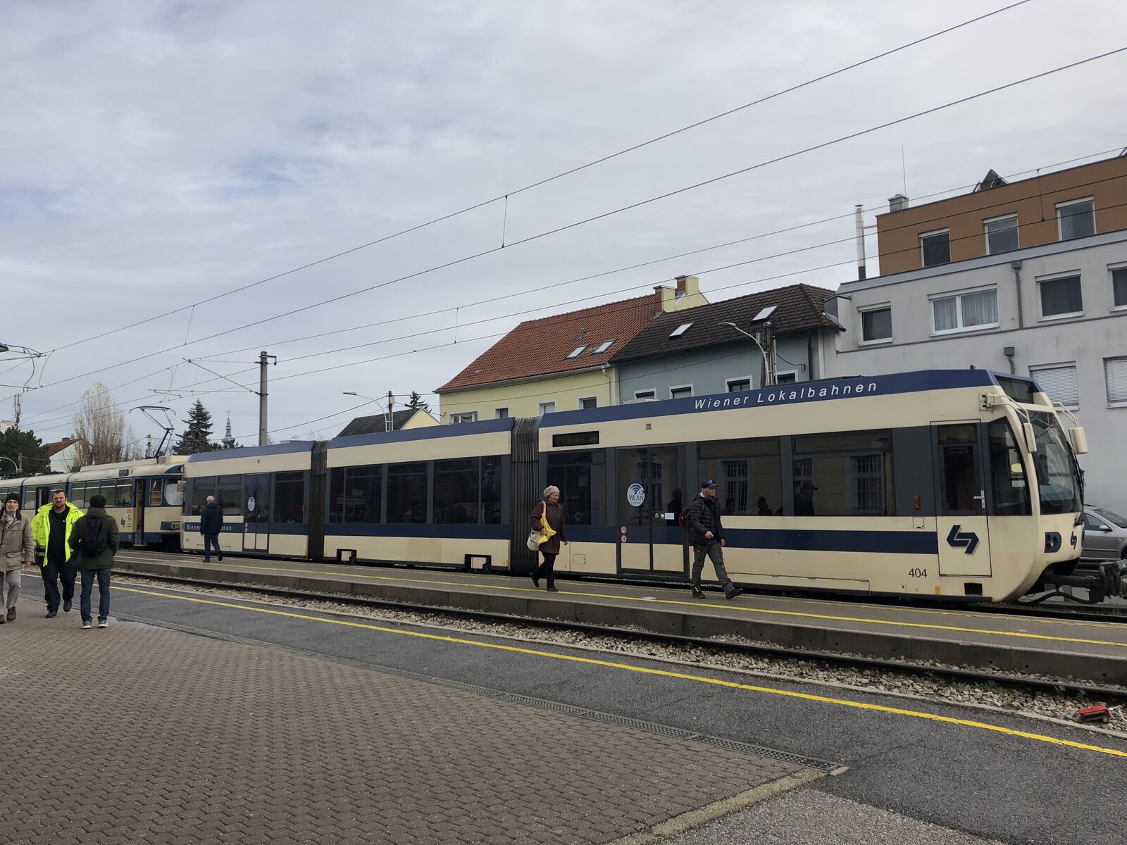 ウィーン市内は結構混んでいて,時間もかかりましたが,街中を出ると,電車は路上から架線に変わって,周囲ものどかな風景に代わりました。