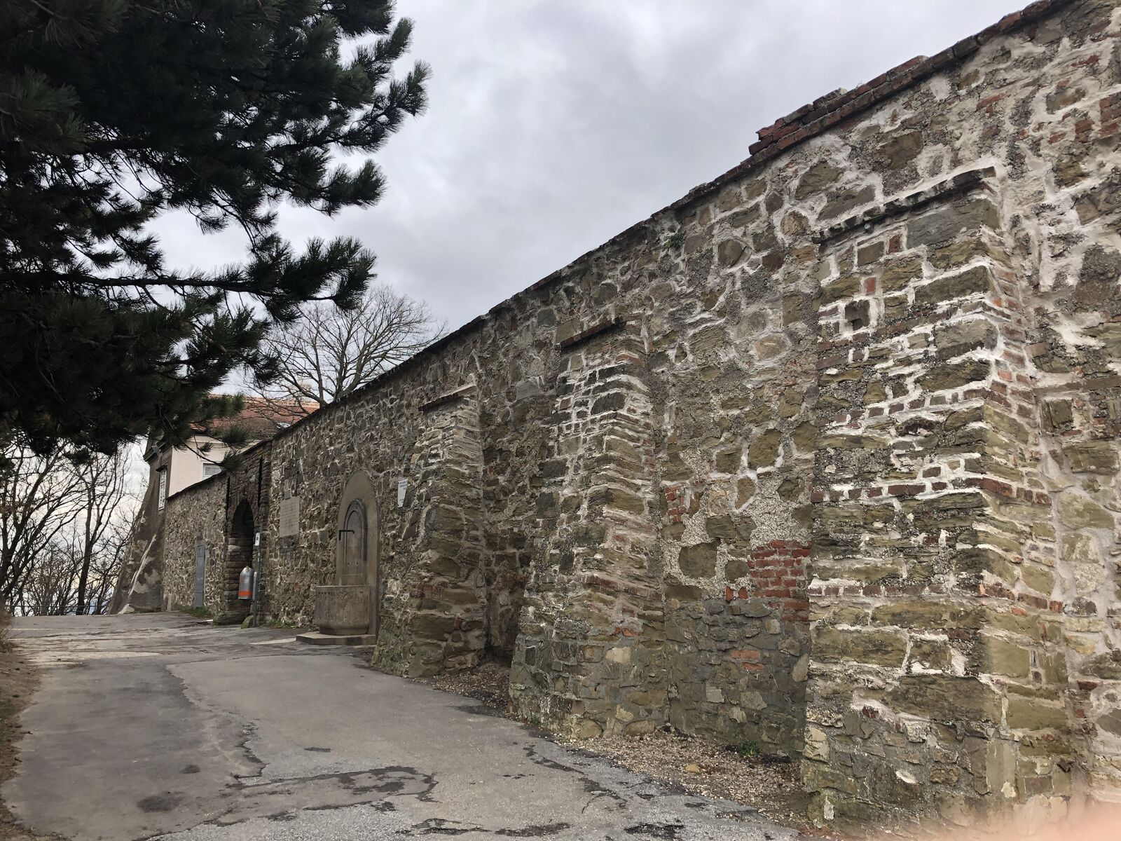 やがて,カーレンベルグ行きと表示されたバスが来たので乗り込みました。しかし,実際は,そのバスはその先のレオポルツベルグまで行くのでした。私には願ったりかなったりで,そうなら終点のレオポルツベルグまで行こうと思いました。バスはかなりの坂を登って行きました。私と一緒に乗り込んだ初老の女性はカーレンベルグのひとつ手前のバス停で降りました。カーレンベルグのバス停にあった駐車場には結構多くの車が停まっていたので,こんな季節でも人は来るのだと思いました。そこでまばらだったにせよほとんの乗客は降りてしまい,バスは私だけが残った気がしたのですが,まだ,あとふたり乗っていました。そこからさらにバスは少し坂を登って終点のレオポルツベルグに着きました。バスを降りたのは,私の他には若いふたり連れの女性だけでしたが,その女性たちもまた,レオポルツベルグからカーレンベルグまでハイキングを楽しみに来たのでした。