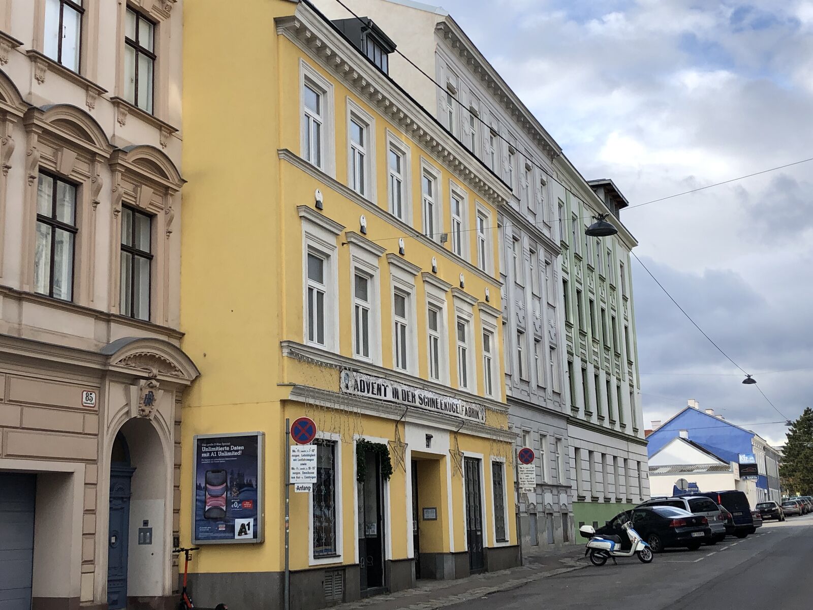 昨年はテゲトフ通り沿いもケルントナー通り同様に楽しい散歩道でしたが,今年はあいにくデゲフト通りは工事中で掘り返されているので車の通行が禁止されていて,かろうじて端っこを歩行者が通れるだけになっていました。