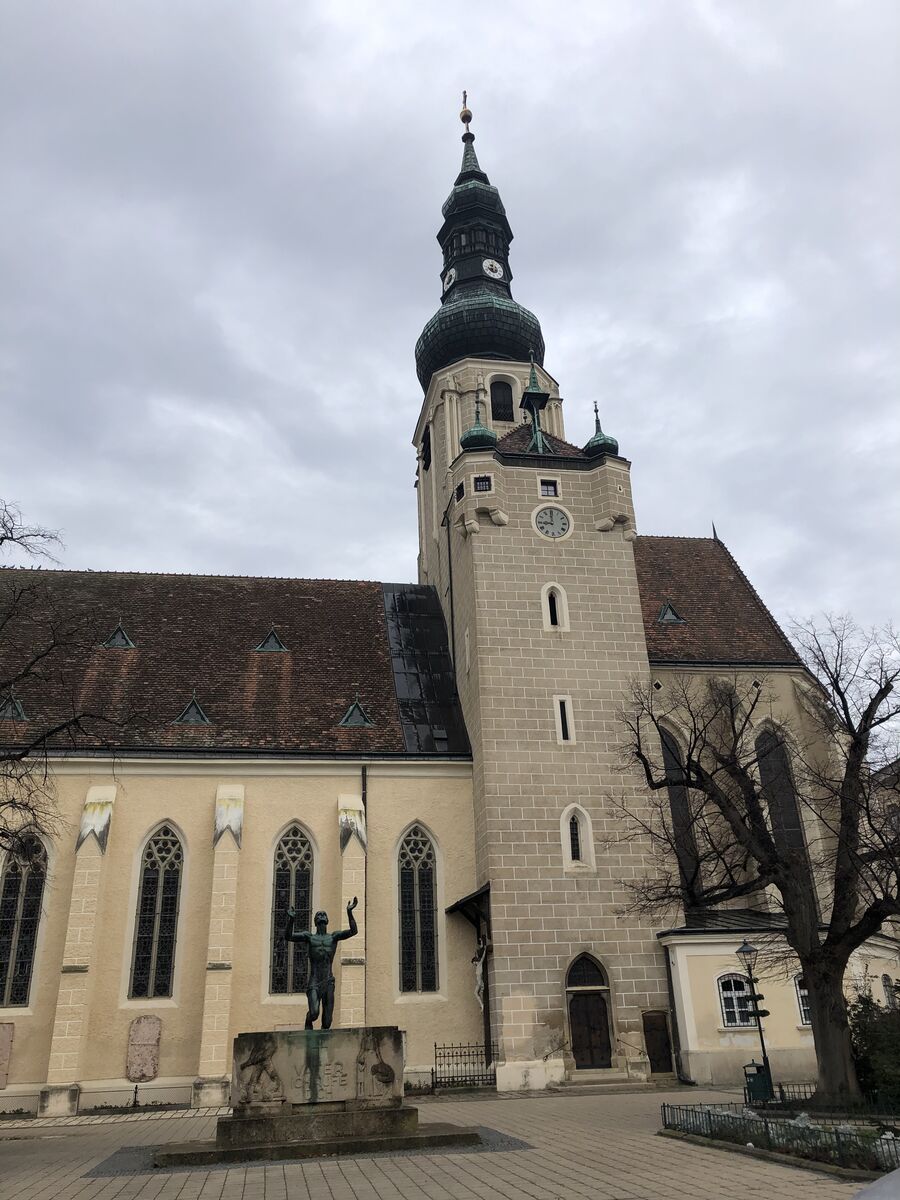 まず,見つけたのは,モーツアルトホフという建物でしたが,ここは非公開でした。モーツアルトの妻コンスタンテェが療養で滞在した場所で,ここで妻の世話意をしたバーデンの合唱団の指揮者シュトルさんにモーツアルトが「アベ・ベルム・コルプス」を贈ったのだそうです。さらに進むとシュテファン教会がありました。シュテファン教会はモーツアルトゆかりの教会で「アベ・ベルム・コルプス」が初演された場所です。