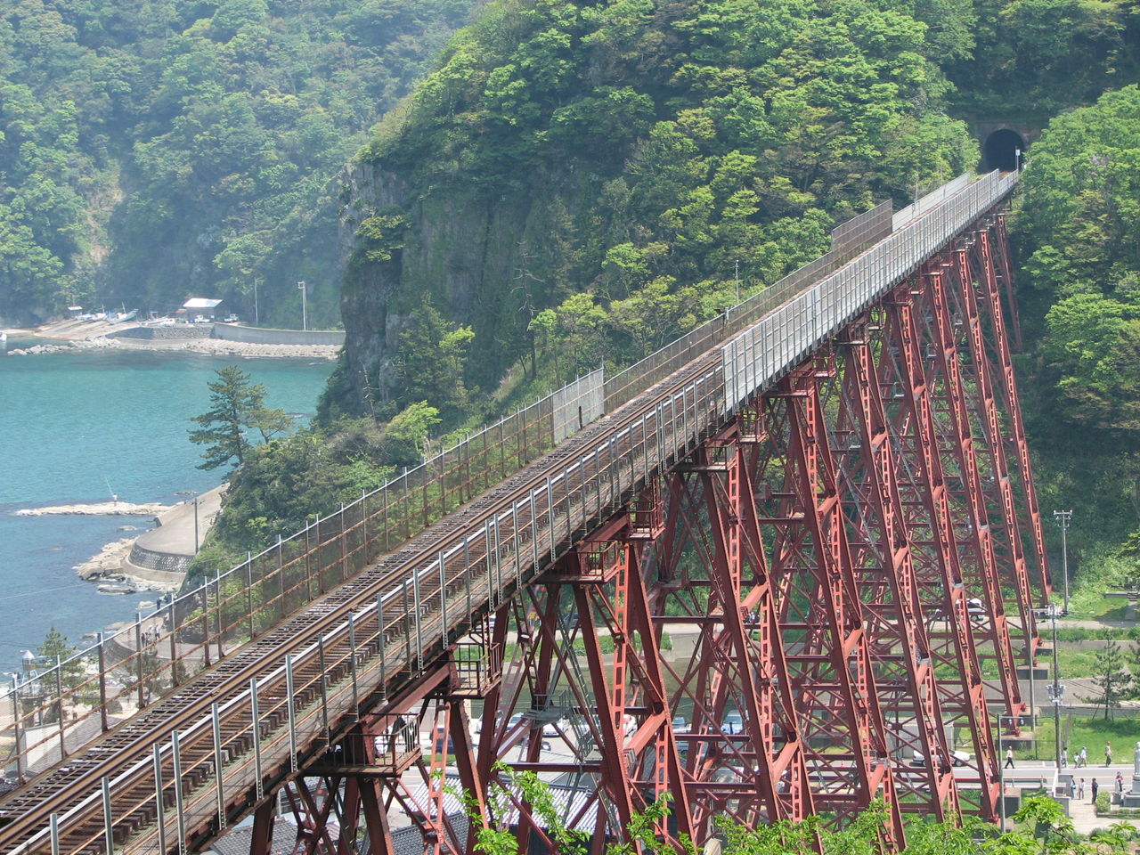 まず,名古屋からJRだか国鉄だかの電車に乗って,単線の山陰本線を西に西にと進みました。そして,名所ごとに降りて,その地方の観光をし,ユースホステルに宿泊していくのです。そのなかで私が最も印象に残っているのは,余部鉄橋というところでした。