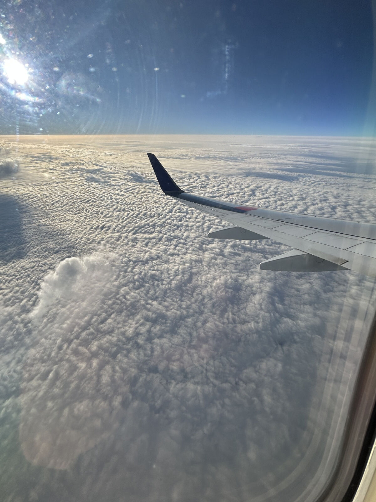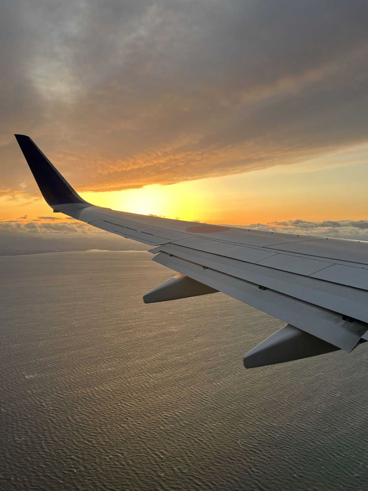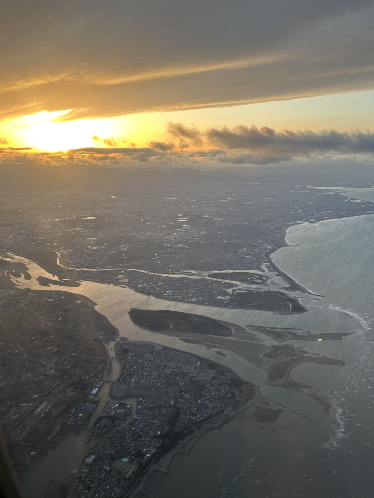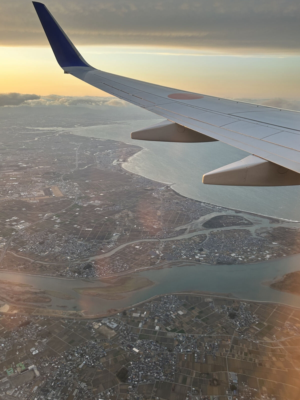 ともかく,やっと搭乗時間になったので,機内に入りました。窓際の席だったので,夕方の美しい景色を見ることができました。