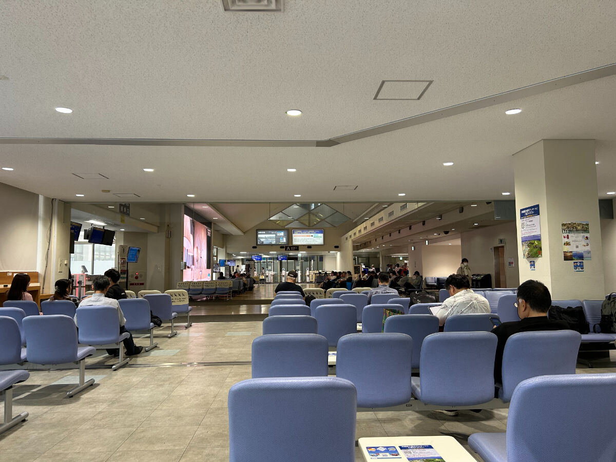 これ以上長居できないので,まだ時間はあったけれど食堂を出て,搭乗口から空港待合室に入りました。むしろ,待合室のほうが広く快適でした。