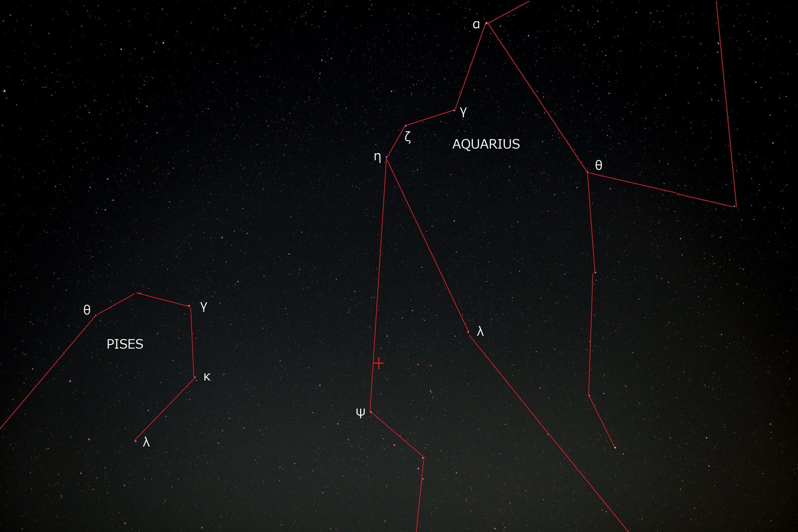 もともとは,太陽系外に地球のような惑星を探すときに,太陽のような大きさの恒星のまわりをまわる惑星系を対象としていました。赤色矮星のまわりをまわる惑星系を探すという発想自体がなかったのです。それが,今回,やはり赤色矮星のまわりをまわる約4光年先の「プロキシマ・ケンタウリb」同様,約40光年先,みずがめ座(1番目の写真のなかの「+」の場所)にある「トラピスト1」という18.8等星の「赤色矮星」のまわりに7つの岩石でできた惑星が公転しているということがわかったのです。7つの惑星は,内側から b,c, d, e, f,g と呼ばれていて,大きさは地球くらいのサイズで岩石でできていると思われるのです。