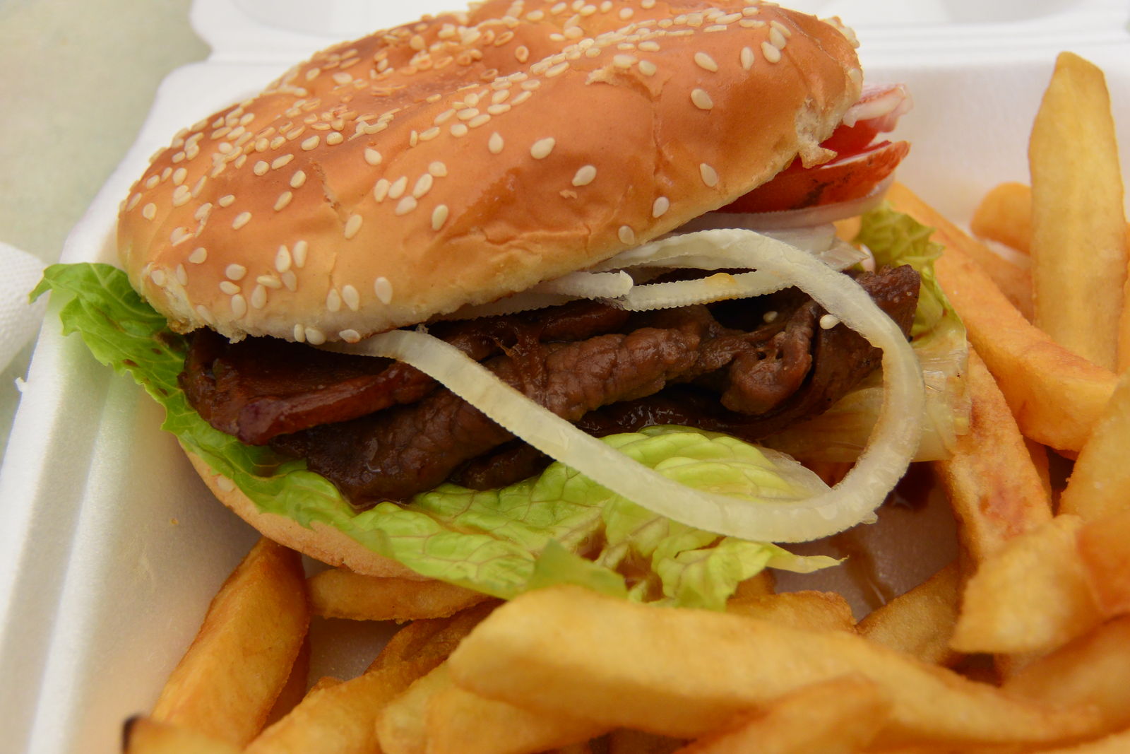 夕食はツアーに含まれていたから,お昼は軽くおやつ代わりに何かを食べることにして,いつものホテルの近くのマウイモールのフードコートに寄ってハンバーガーを注文した。