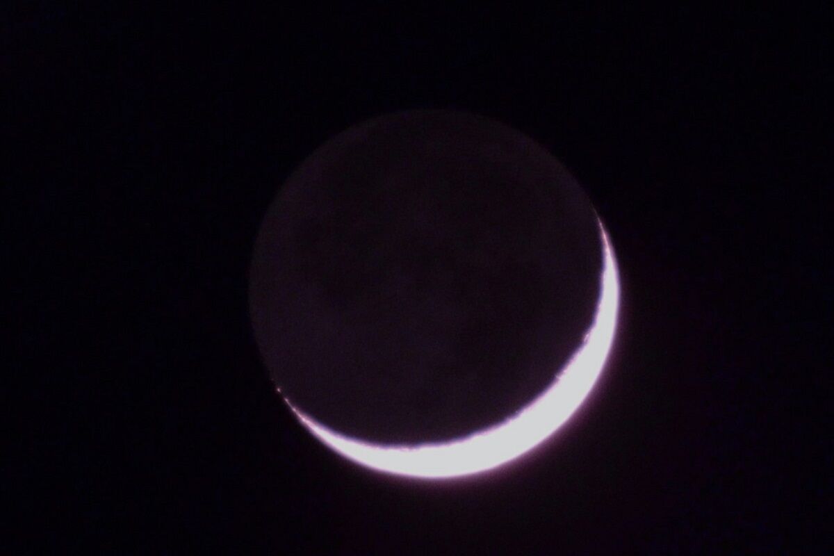 地球照は,月が欠けて暗くなっている部分が地球に照らされてうっすらと見える現象です。英語には「the old moon in the new moon's arms」という慣用句があります。