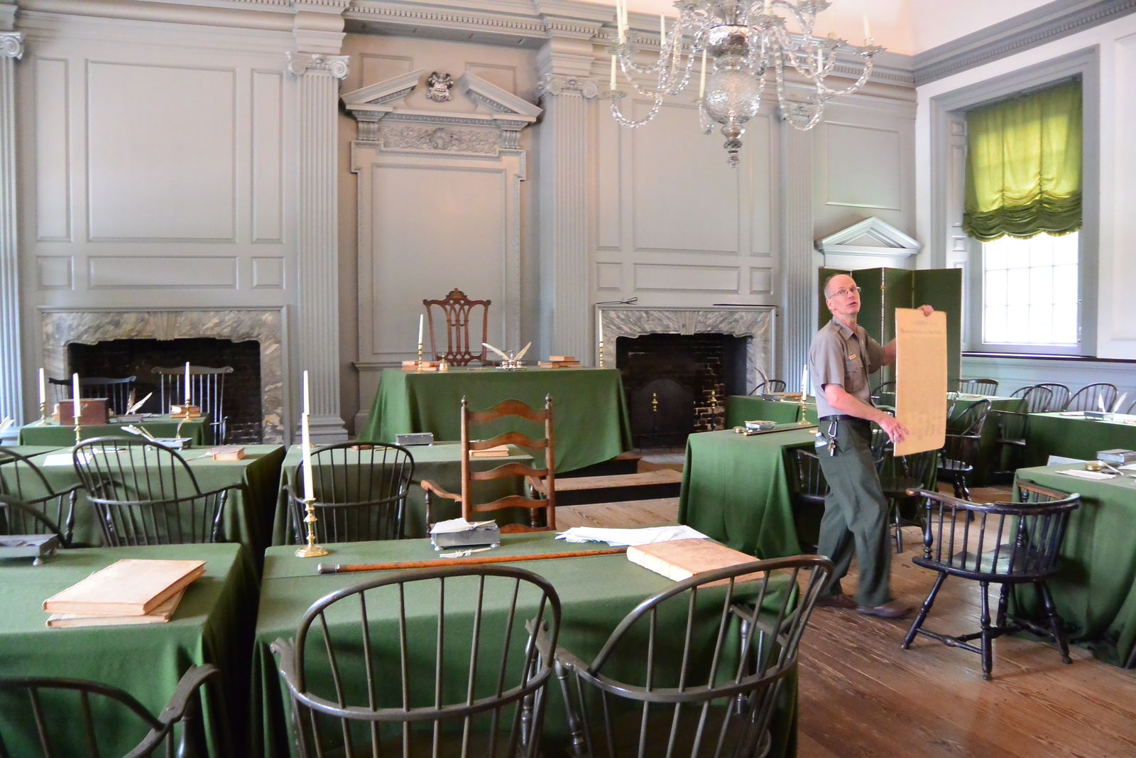 フィラデルフィアは1790年から1800年のわずか10年間であったがアメリカ合衆国の首都だった。このときに国の議事堂としても使用されたのがこの建物で,議員数が少なかった当時「元老院」が2階を議場として使用し,議員数の多かった代議院が1階を議場として使用したことが現在の「上院」と「下院」という呼び名の語源である。