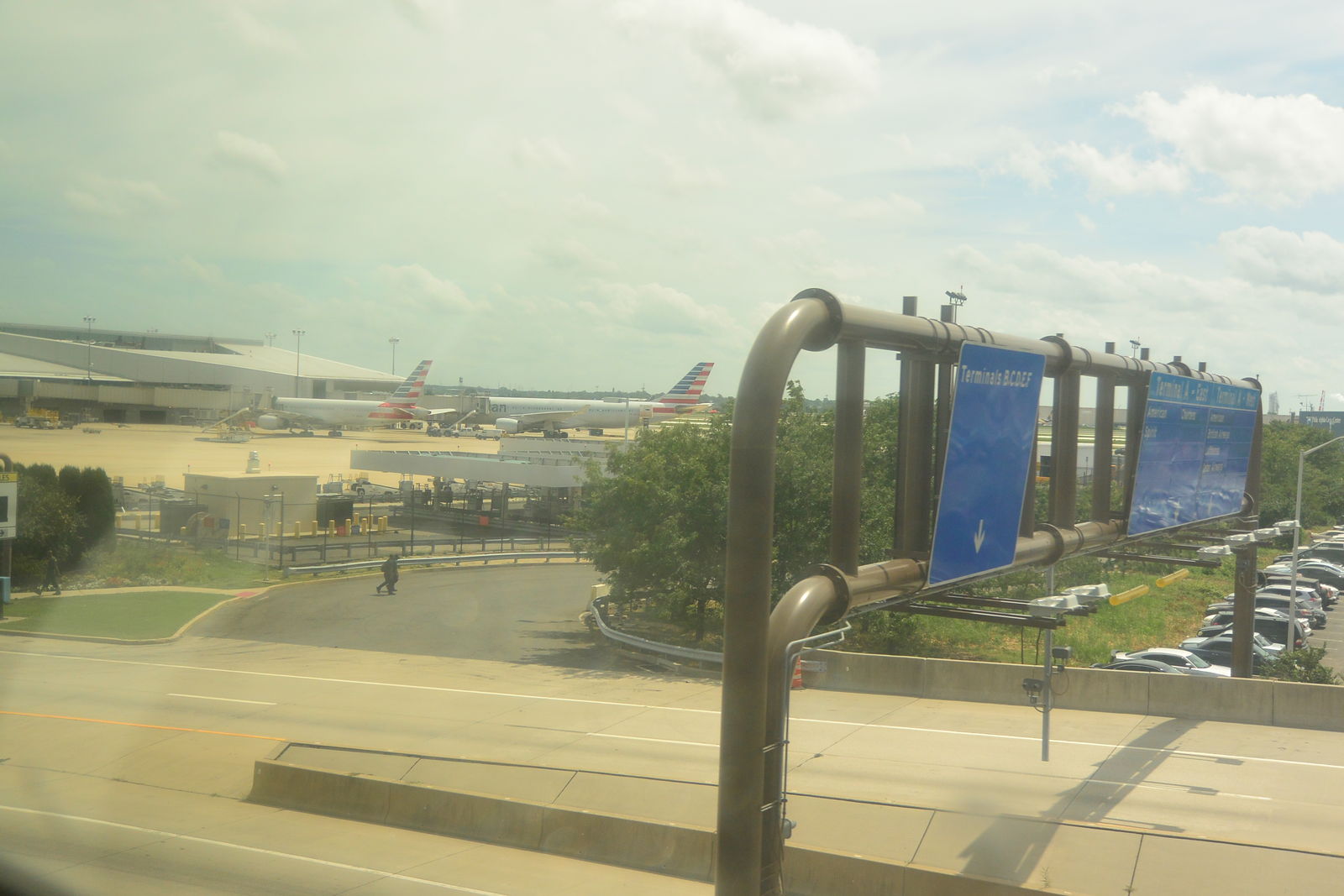 30分もかからず,電車は空港に近づいてきた。窓から右手に広い空港が見られるようになった。アメリカの空港はどこもあまりに広すぎて,ターミナルから歩いて外にでるなんて不可能である。だから,たとえ空港に隣接したホテルであっても,車がなくそこに行くのは不可能である。