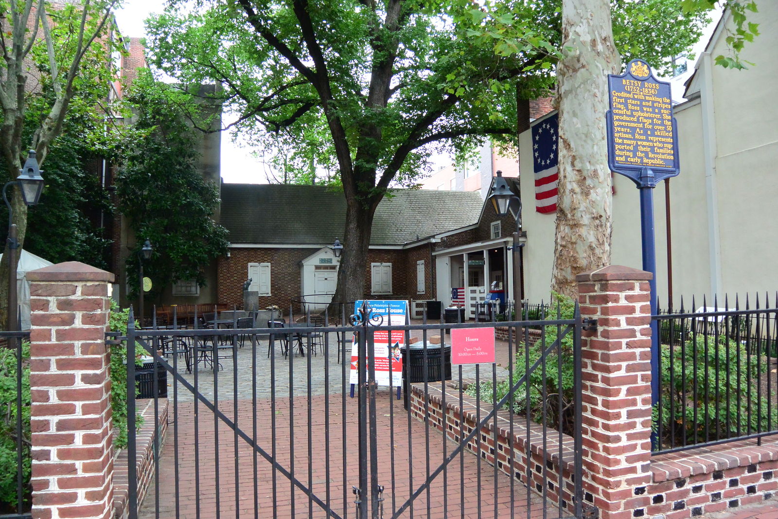 ベッツィ・ロスは初めて星条旗を縫った女性として有名で,現在は彼女の家が史跡になっている。家の外には昔のアメリカの星条旗が掲げられていて,その星のデザインは今より数が少なく独立当時の13個である。