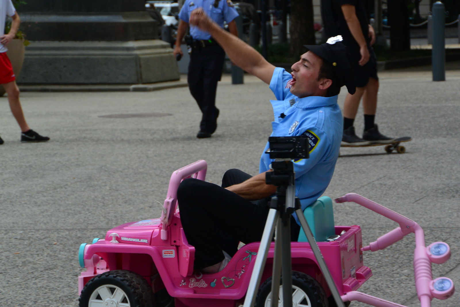 市庁舎の広場では不思議なものを見た。それは,子供のおもちゃ自動車に乗って奇声を発している男であった。彼の服装から見て,ガードマンなのであろうか,あるいは警官なのであろうか?