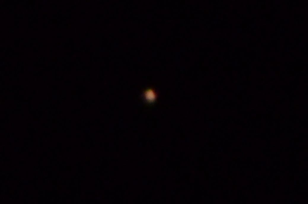 はじめに露出時間4分の1秒,ISO1600で写した写真を確かめてみると,昇ってきた水星を捉えることができたので,うれしくなりました。よく確かめると,火星も写っていました。さらに時間を置くと,高度が高くなってきて,水星と火星はカメラのファインダーでも簡単に見えるようになり,写真では,火星は赤く,水星は白く写りました。その位置に双眼鏡を向けると,水星は簡単に見つけることができて,水星から目を凝らして右上に写すと,火星も見ることができました。