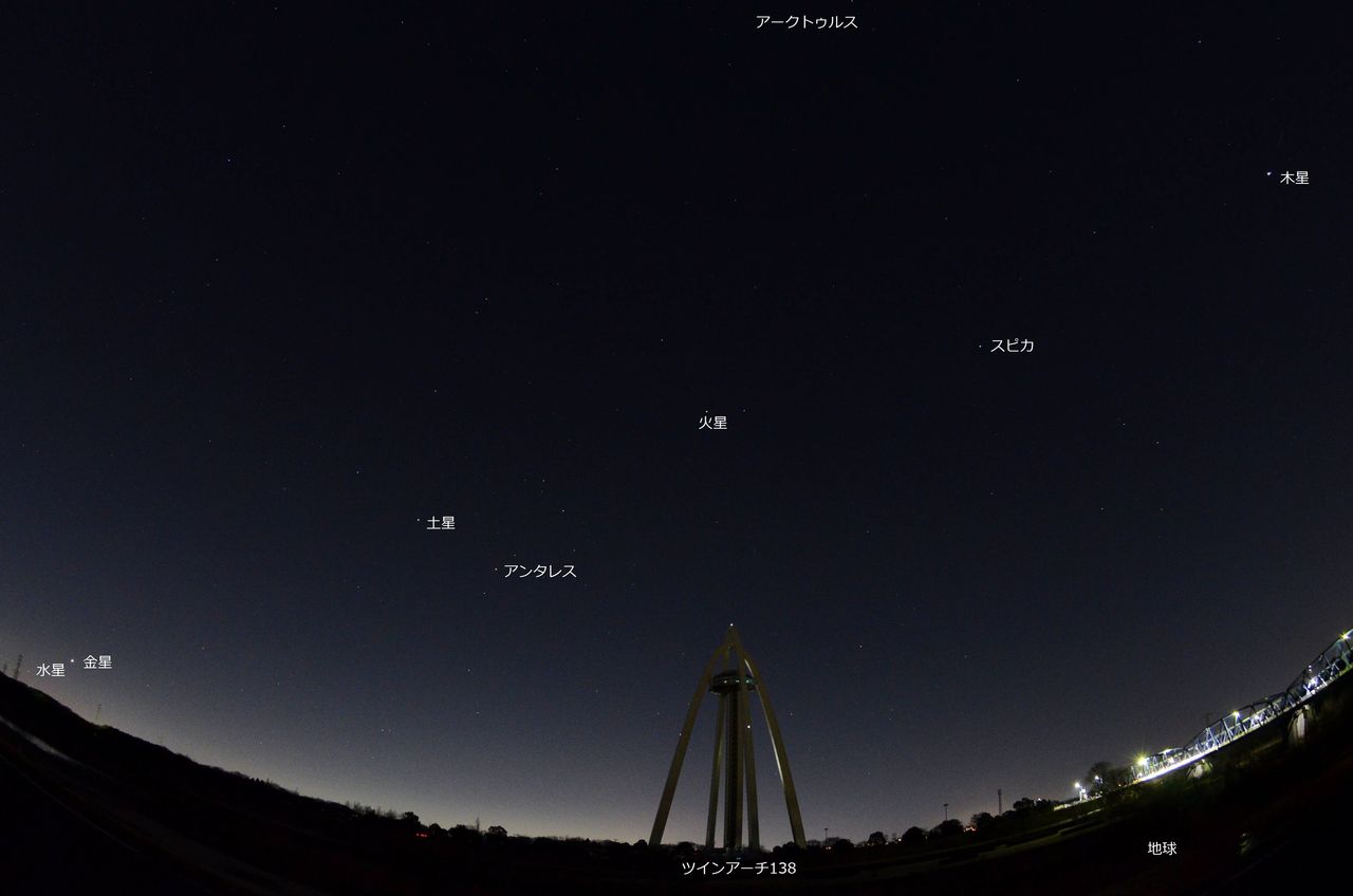 現在も,火星の高度はそのときと同じくらいで,日の出30分前でも5度程度と非常に低いものです。すでに薄明が進んでいて「こんなもの見えるのかな? 写るのかな?」と疑問があったので,見えなければ見えなくてもよくてそれを確かめることが楽しいから,実行してみることにしました。