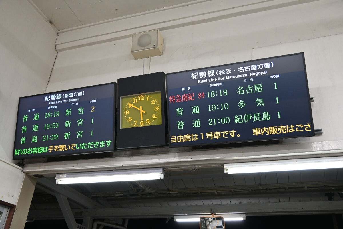 駅の時刻表を見てもわかるように,JR尾鷲駅を発着する列車は,1時間に1本もありません。次に来る列車を待っていたのは,車を持たない高校生ばかりのようでした。