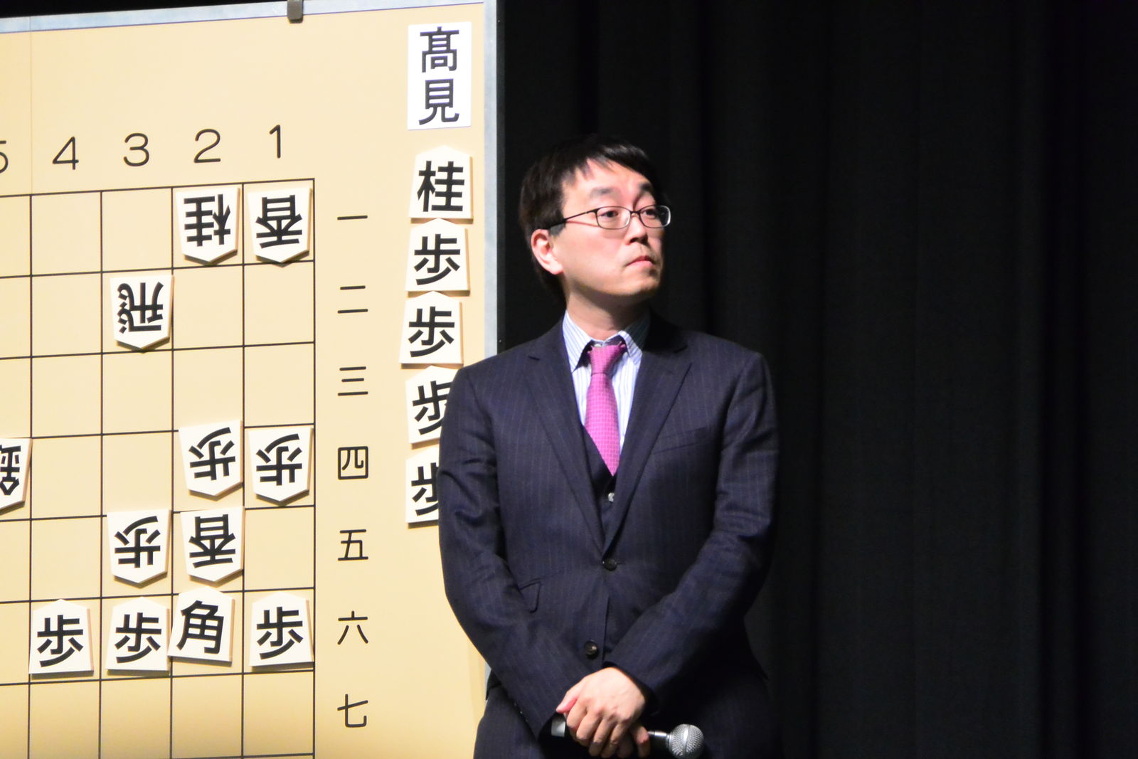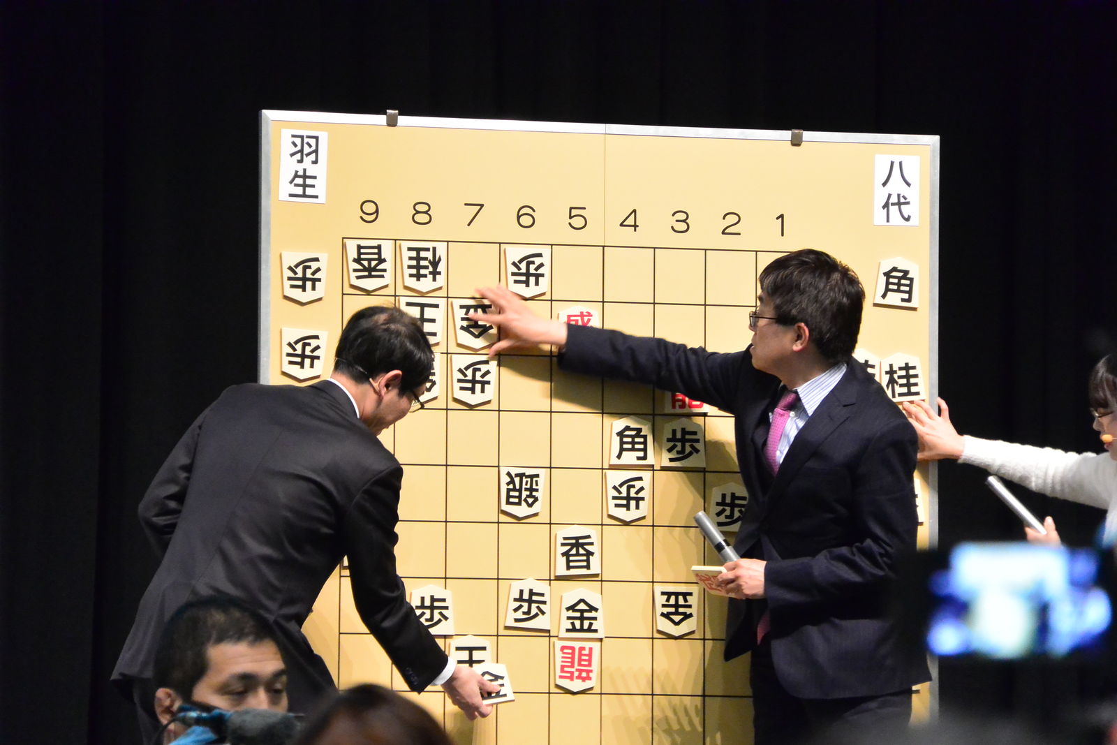 私の席は前から2列目の左から5番目でしたが,羽生竜王が2局とも後手番だったので,ちょうど表情が見える席でラッキーでした。